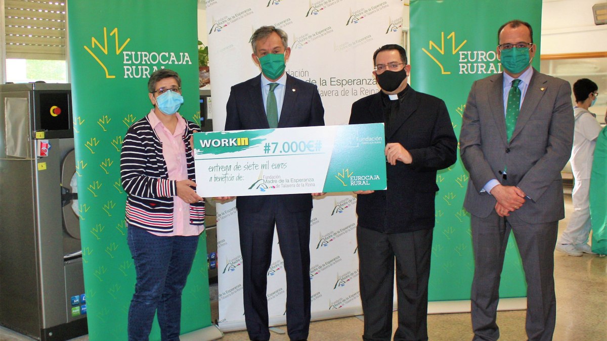 La Fundación Eurocaja Rural ha entregado un cheque con valor de 7.000 euros a la Fundación Madre de la Esperanza de Talavera de la Reina, en reconocimiento al proyecto ‘Nuevos retos. Nuevas oportunidades. Servicio de lavado con barrera sanitaria’, una de las diez iniciativas ganadoras de la 5ª edición de los ‘Premios WORKIN’.