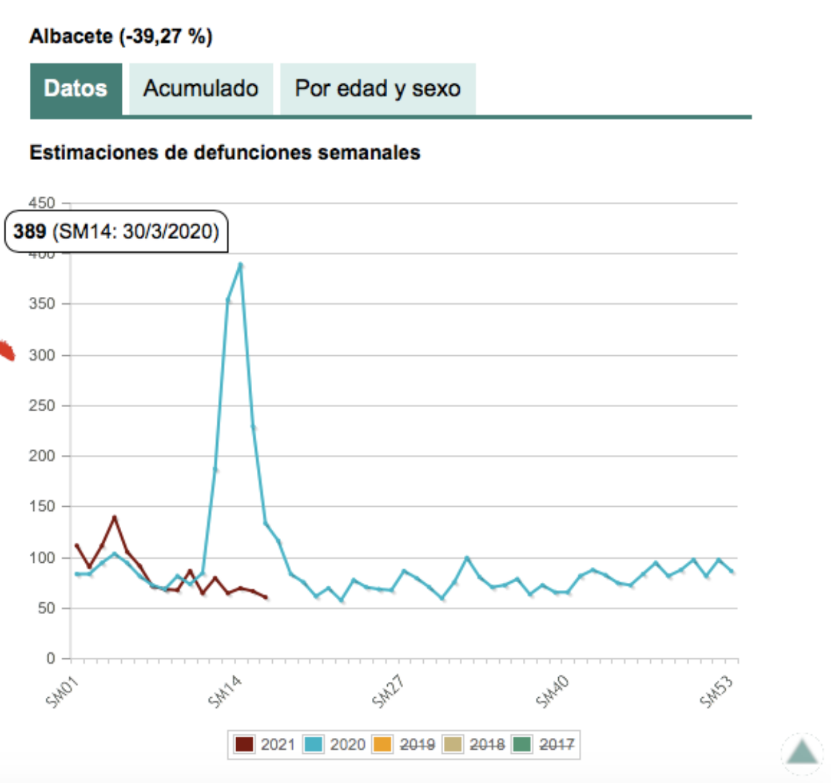 También es especialmente llamativo el dato acumulado hasta esta Semana 16. En concreto, la cifra de defunciones contabilizadas por el INE en lo que va de año en la provincia de Albacete asciende a 1.341, frente a las cerca de 2.210 registradas en el mismo periodo del pasado año 2020.