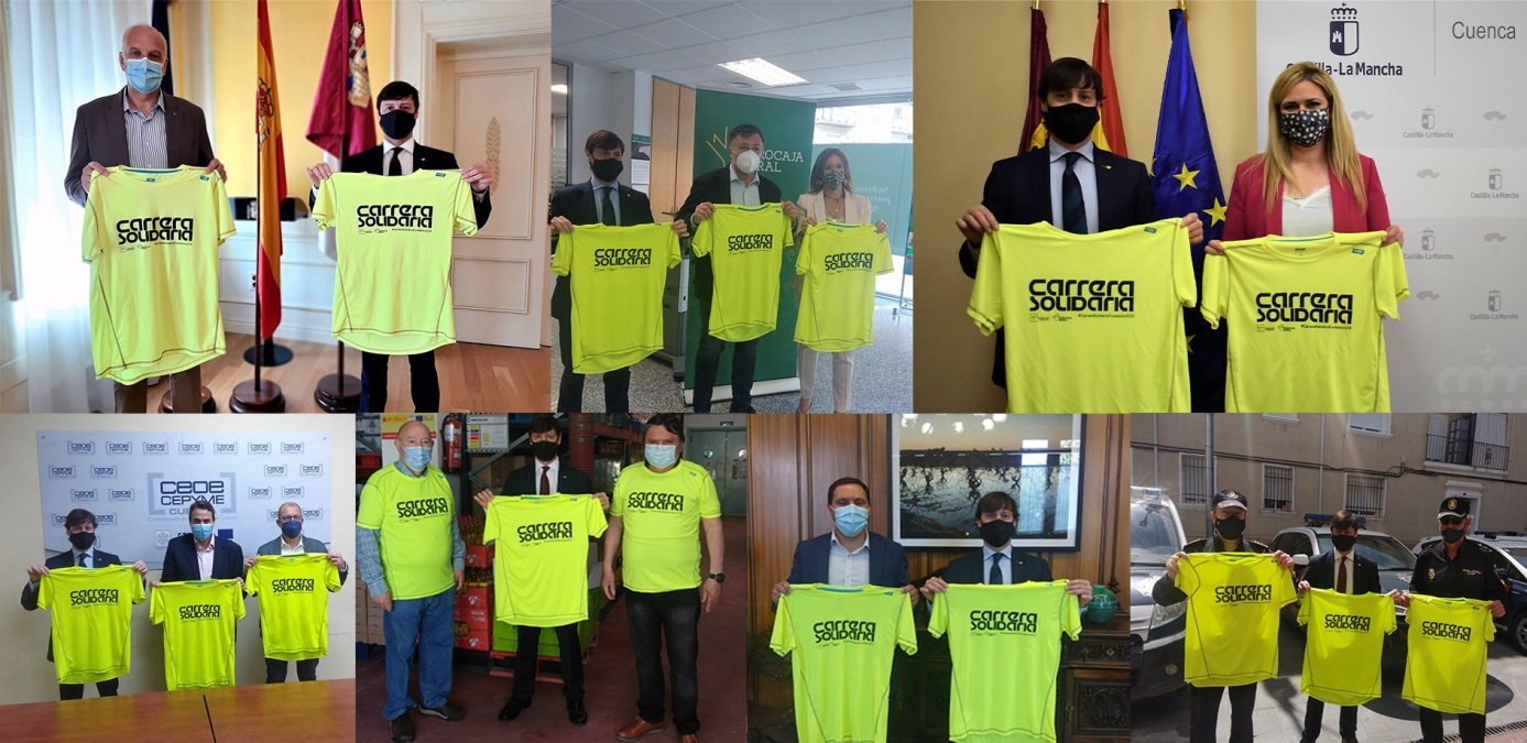 Así, el alcalde del Ayuntamiento de Cuenca, Darío Francisco Dolz Fernández; el presidente de la Diputación Provincial de Cuenca, Álvaro Martínez Chana; el subdelegado del Gobierno en Cuenca, Juan Rodríguez Cantos; la delegada de la JCCM en Cuenca, María Ángeles Martínez Hernández; el presidente de CEOE CEPYME Cuenca, David Peña López; el presidente de Banco de Alimentos Cuenca, Antonio Villaseñor; o el Inspector Jefe-Jefe Accidental Comisaría Cuerpo Nacional Policía Cuenca, Francisco Collado Mateo, han posado con la camiseta que lucirán los participantes en este evento deportivo-solidario, mostrando así su respaldo y sensibilización con la causa.