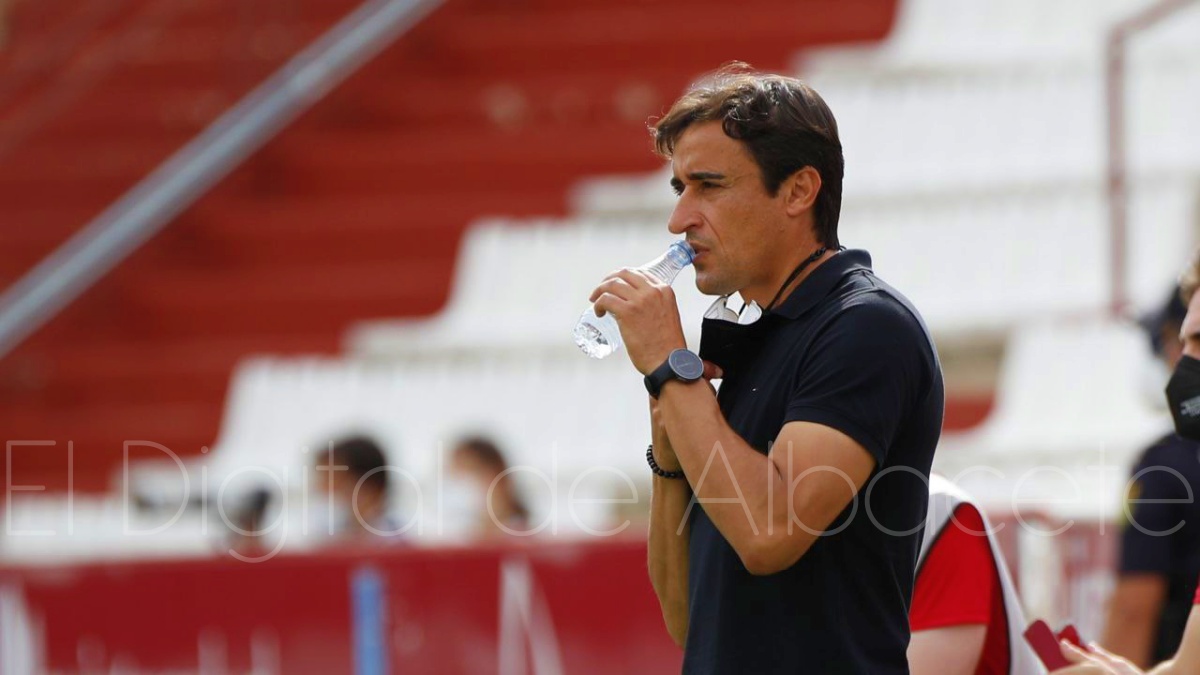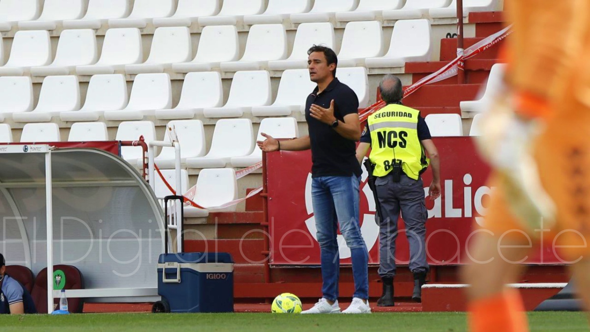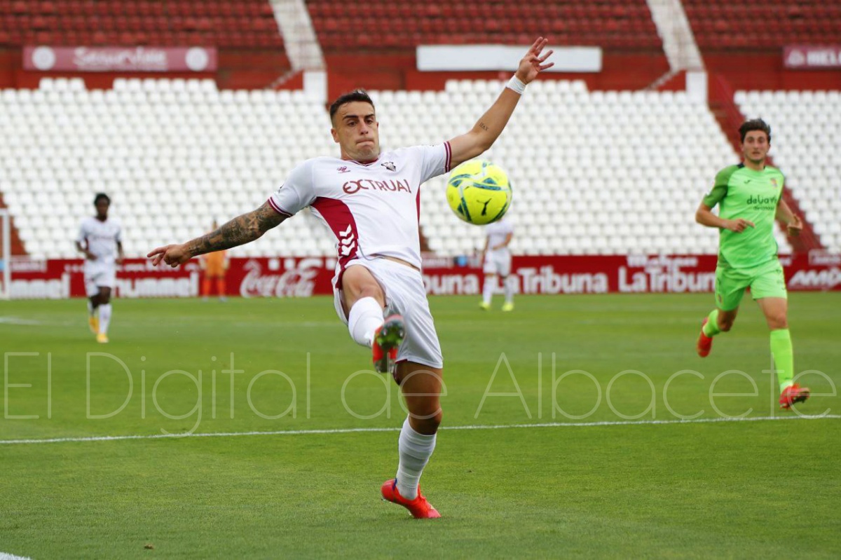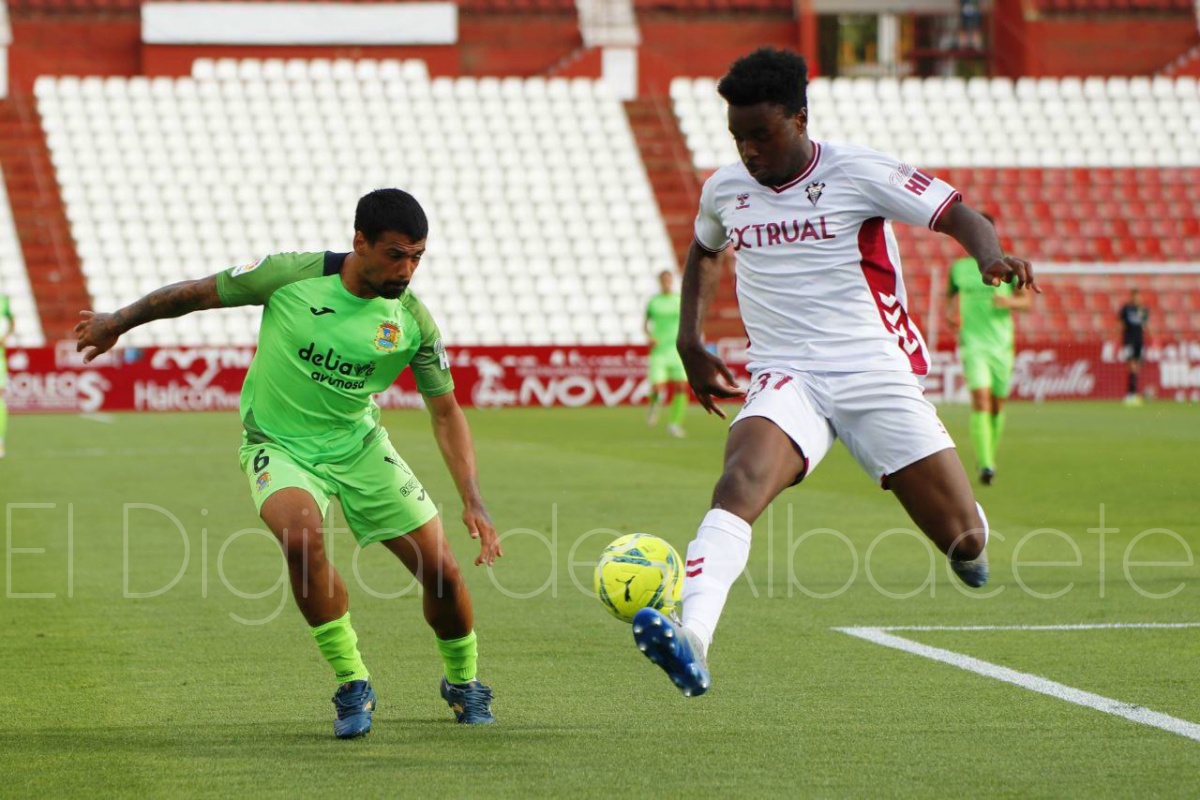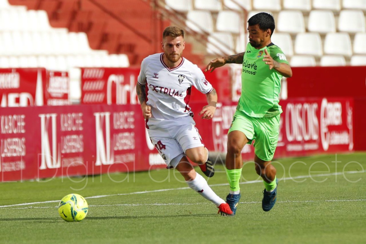 Estaban pasando tan pocas cosas sobre el terreno de juego que lo único que pasaba era el tiempo, mostrándose ambos guardametas prácticamente inéditos todavía cuando el partido encaraba el final de la primera mitad. En lo que a la defensa blanca se refiere, la zaga se estaba mostrando segura y no había cometido errores, recibiendo constantes ayudas de un centro del campo que se prodigaba mejor en destruir que en crear y que no estaba surtiendo de balones en condiciones a los encargados del gol; arriba, Manu Fuster se mostraba en su línea, desaparecido, y Emiliano Gómez, como decíamos, era el jugador que más estaba poniendo de su parte para que fuera el 1 y no el 0 el guarismo en el casillero albacestista del marcador electrónico del Carlos Belmonte.