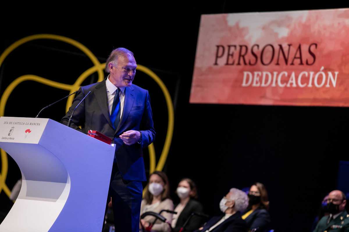 Piqueras ha recogido este lunes esta Medalla de Oro que le fue concedida en 2020 en el acto institucional del Día de la Región que se celebra en el Teatro Buero Vallejo de Guadalajara, donde ha querido tener una palabras muy especiales para su ciudad, Albacete, donde confiesa sentirse como uno más y reconoce el placer que le produce pasear por el Parque Abelardo Sánchez, la Calle Ancha y saludar a la gente con la que se encuentra.