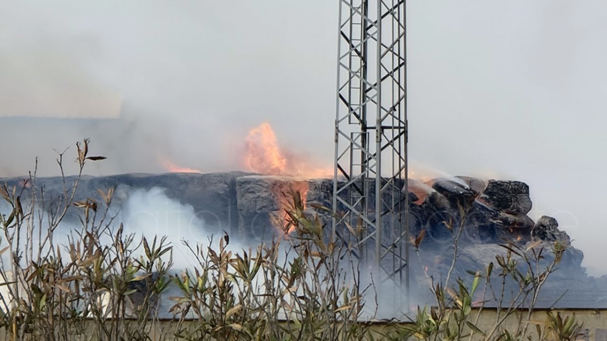 Por motivos que se encuentran bajo investigación, pasadas las 16:00 las llamas han comenzado a calcinar una zona de alpacas apiladas, material que ha ardido con gran virulencia y que ha provocado una gran columna de humo visible desde toda la ciudad y que llamaba la atención de cuantos transitaban por esta importante carretera.