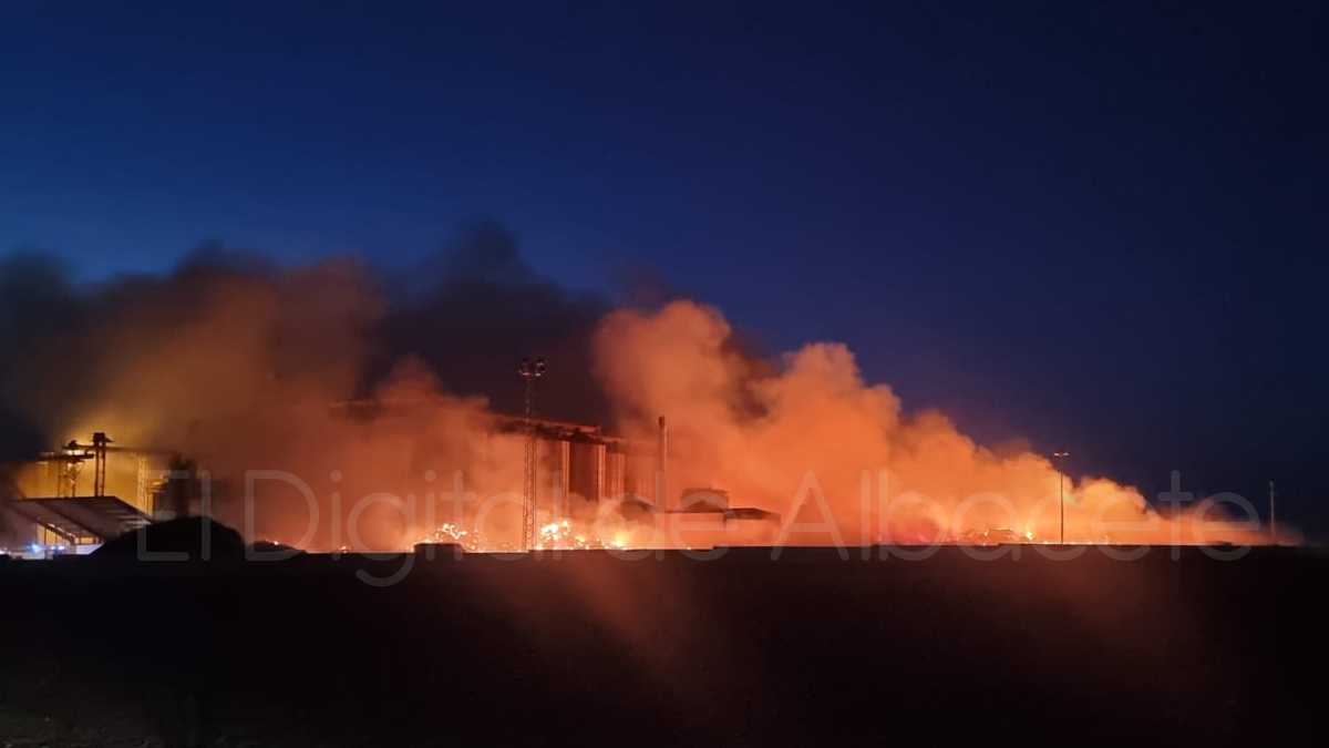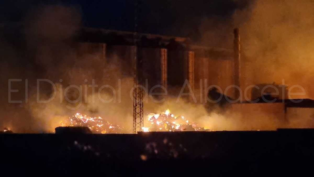 Después de hacerlo durante buena parte de la tarde debido a la hora que se declaró, también durante la noche las llamas siguieron calcinando montones de alpacas, biomasa, alguna nave y maquinaria; que se ha visto afectada en estas amplias instalaciones agrícolas hasta las que se desplazaron más de media docena de vehículos de extinción del Parque de Bomberos de Albacete, Base Aérea de Los Llanos, Policía Local y Guardia Civil.