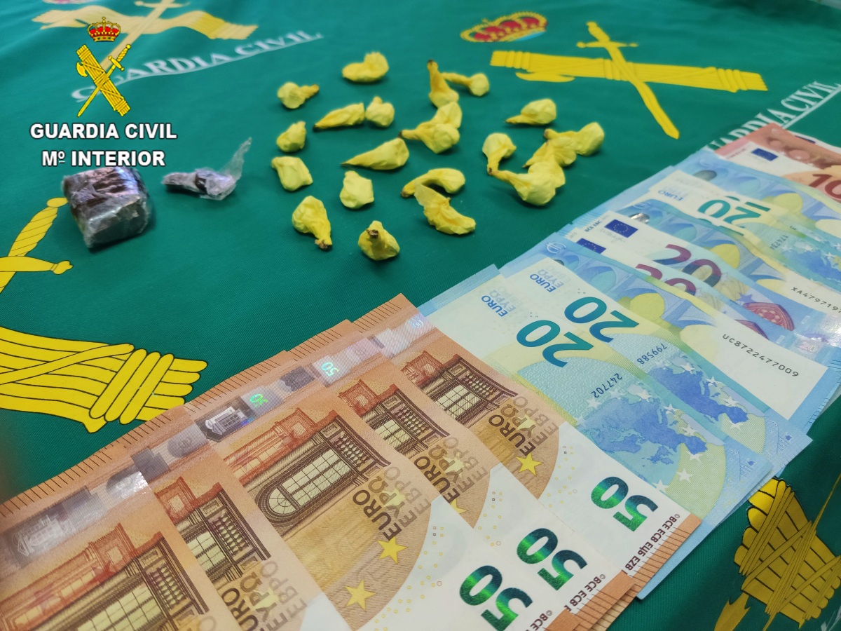 Con motivo de este hallazgo los agentes trasladaron a esta persona a las dependencias de la Guardia Civil en Brihuega para el total esclarecimiento de estos hechos, pudiendo comprobar tras los análisis practicados a las sustancias intervenidas que se trataba de 23 gramos de cocaína y 28 gramos de hachís, por lo que se procedió a la detención de esta persona. También le fueron intervenidos 570 euros que portaba en el momento de la identificación.