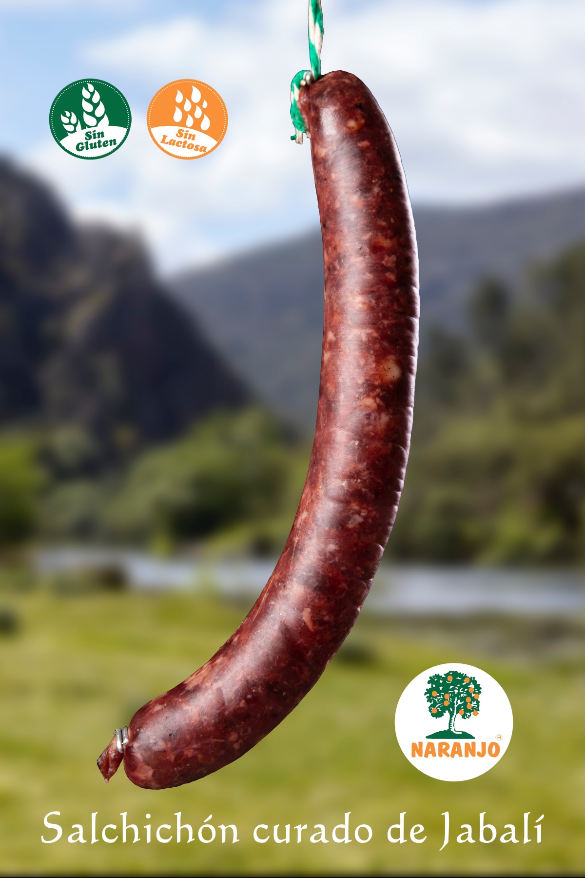 Su salchichón curado de jabalí es un producto de calidad extra, elaborado a partir de carne de jabalí y siguiendo su receta tradicional. Al igual que la mayoría de sus productos, no contiene gluten ni lactosa. Es un producto libre de alérgenos, como ingredientes, y que puede ser consumido por todo el mundo, incluidas las personas que presenten alguna intolerancia. El producto se presenta en velitas de 250 grs envasado al vacío y con una caducidad de seis meses.