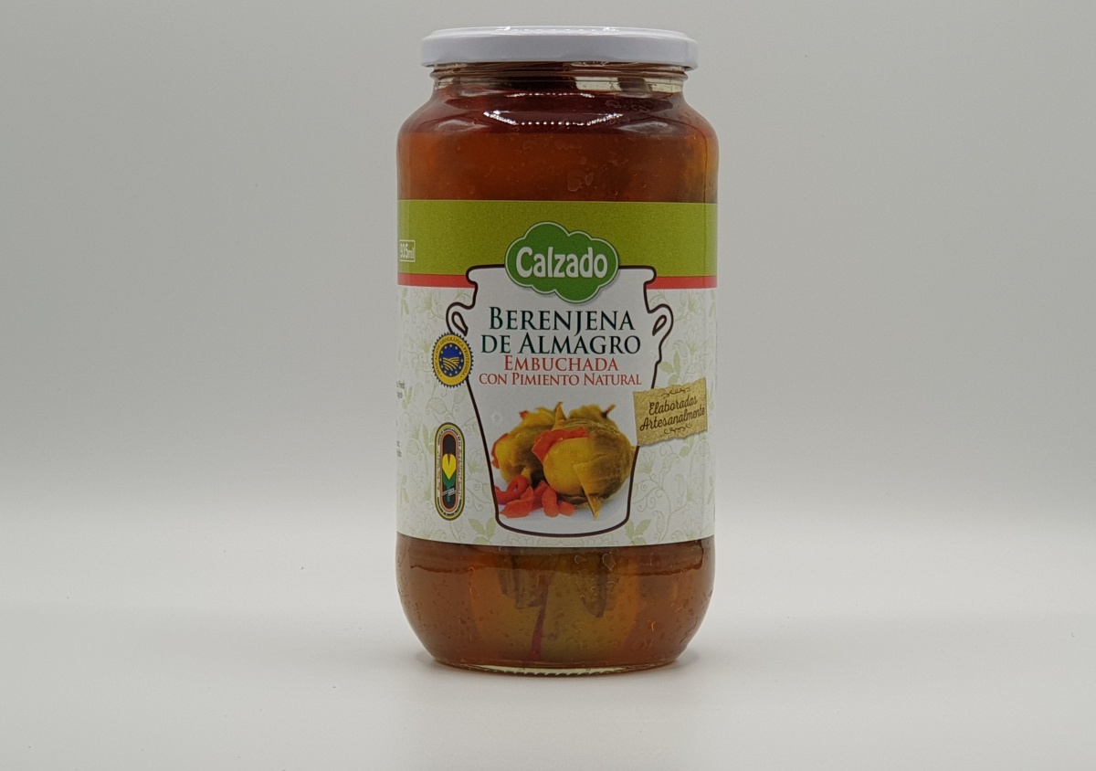 Las berenjenas embuchadas se denominan a las berenjenas de Almagro aliñadas, abiertas y rellenas de pimiento rojo y cerradas posteriormente con una ramita de hinojo. Esta planta aromática y el pimiento les dan un sabor especial y hacen de esta forma de preparación de Berenjena de Almagro la más conocida y apreciada de todas. Entre sus numerosas propiedades destacan: mejora la circulación, ayuda a prevenir la arteriosclerosis, adecuada para tratar la obesidad, retrasa el envejecimiento y es una protección anticancerígena, debido al alto contenido en polifenoles, efectos antioxidantes, antivirales y hemostáticos debido a los ácidos fenólicos y las antocianinas presentes en la piel. Para más información disponen de página web: www.conservas-calzado.es