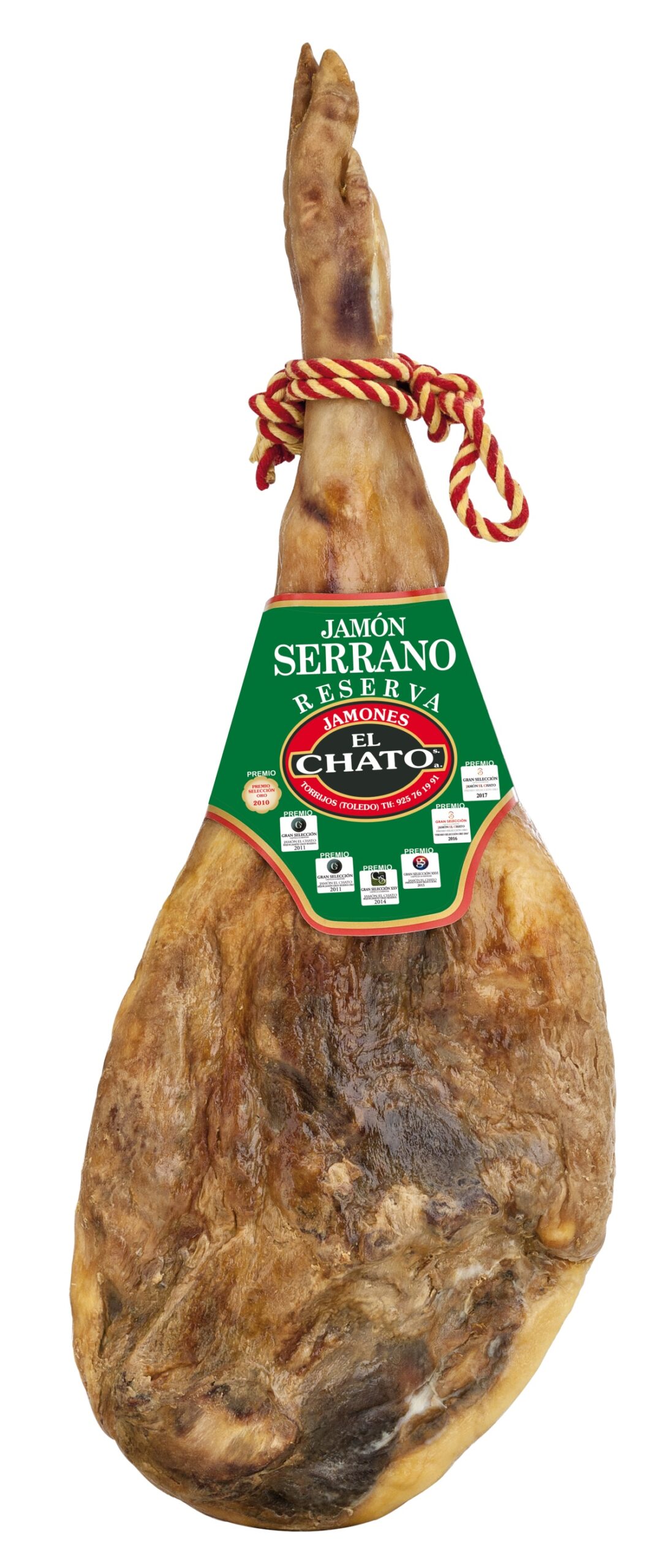 Más de doce meses son necesarios para dar forma al Jamón serrano Reserva El Chato, procedente de cerdos blancos seleccionados, que se fabrica de forma tradicional en sus instalaciones. Gracias a su proceso de curación lento y artesanal, el resultado es un jamón con mucho aroma, bouquet, sabor, infiltración y con poca sal, sin olvidar todas sus propiedades nutricionales.