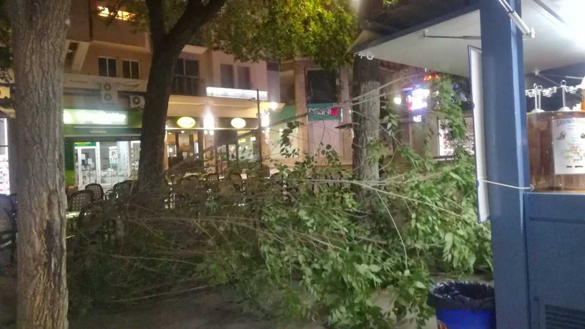 La caída de un árbol sobre la terraza de una heladería ubicada en la Plaza Mayor de Albacete ha provocado un tremendo susto para la gente que transitaba por el lugar y el personal de dicho local.