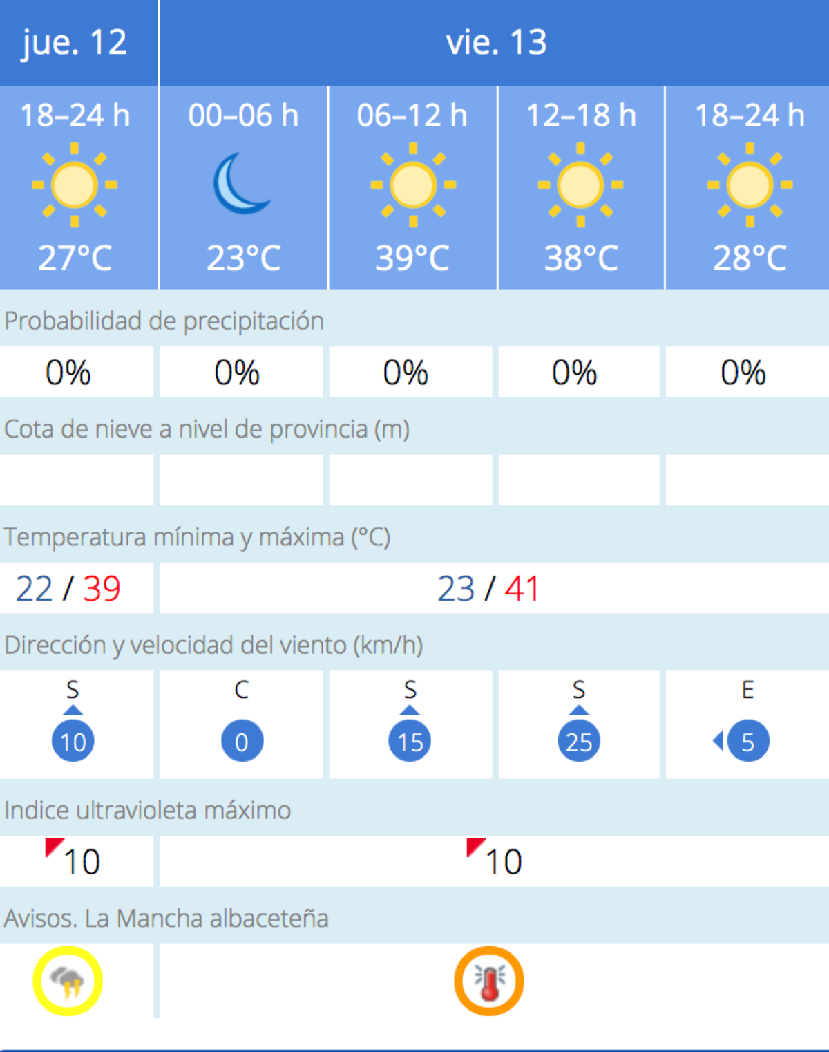 La previsión de la AEMET para Albacete capital es la siguiente: