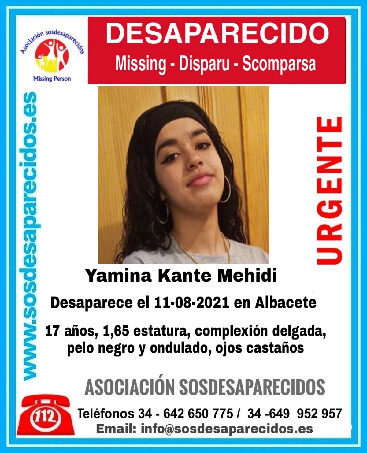 La preocupación sacude de nuevo a la familia de Yamina Kante Mehidi, una chica de 17 años que ha vuelto a desaparecer de su domicilio después de que la Policía Local de Albacete la encontrara durante el pasado fin de semana tras haber desaparecido por primera vez y con anterioridad el 19 de julio.