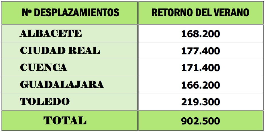 Cuenca con 171.400; Albacete con 168.200 y Guadalajara con 166.200 completan la lista de los desplazamientos estimados para este fin de semana.