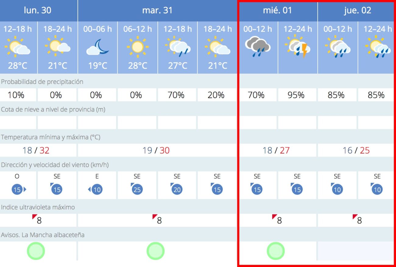 Según la propia AEMET, la predicción meteorológica para Albacete capital es la siguiente: