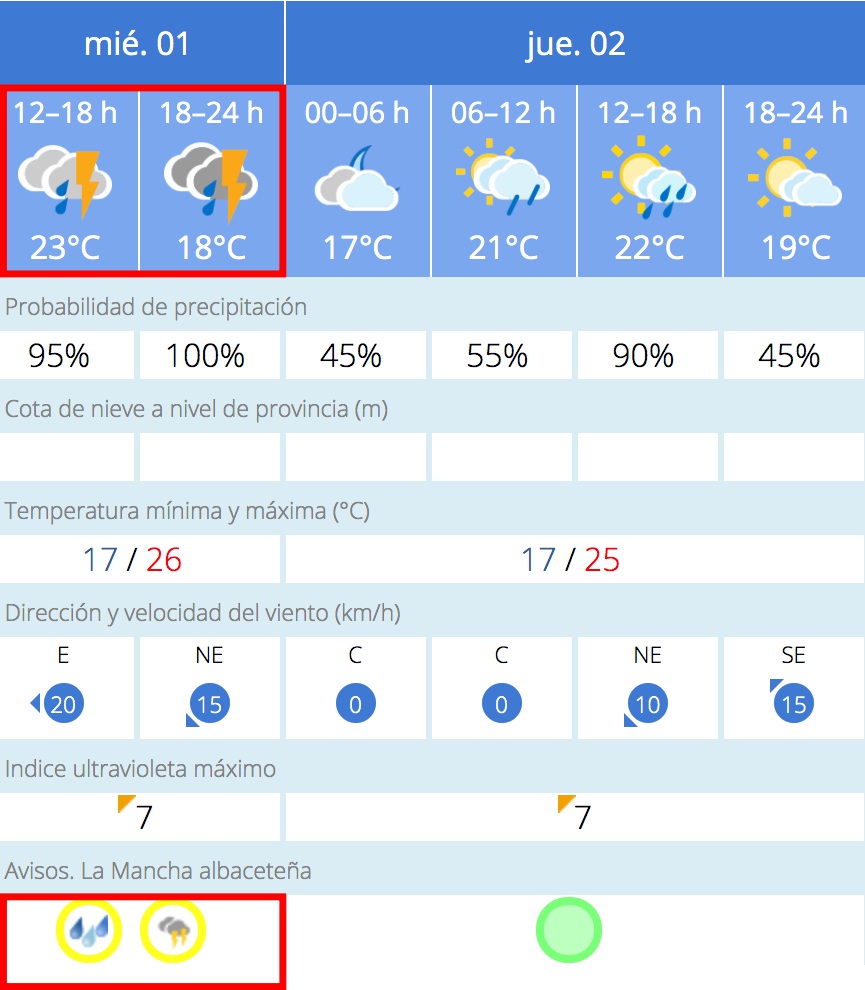 La previsión de la AEMET para Albacete capital es la siguiente: