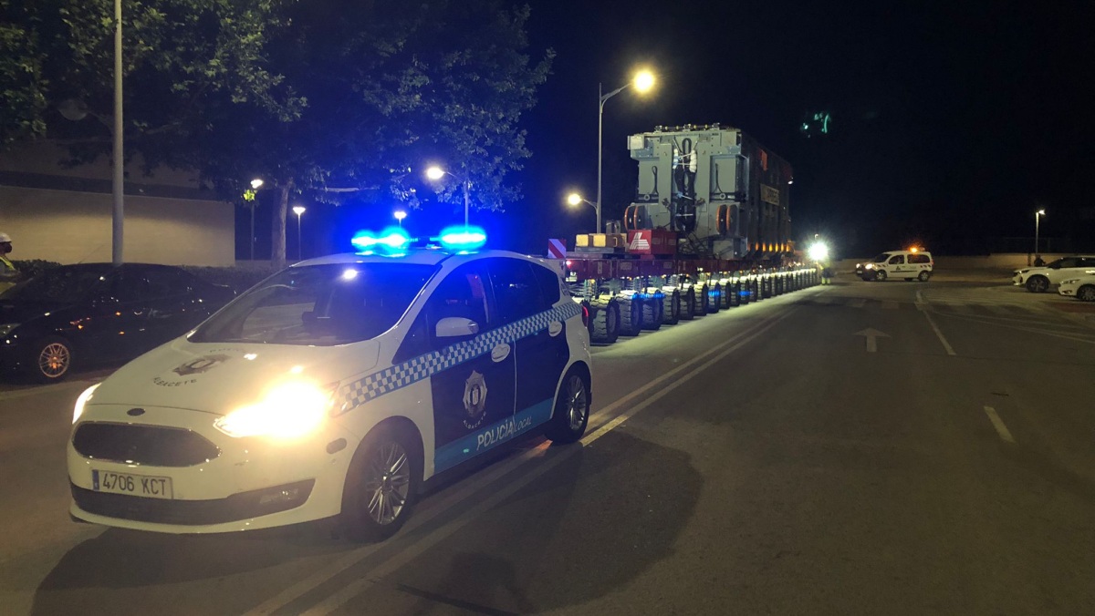 El pasado viernes llegaba por la noche a la capital albaceteña el transformador eléctrico que aparece en las imágenes y debido a su gran tamaño y a su transporte hasta Albacete, Guardia Civil y Policía Local tuvieron que intervenir en su acompañamiento por las carreteras hasta que llegó a su emplazamiento definitivo en el Polígono Industrial de Romica.