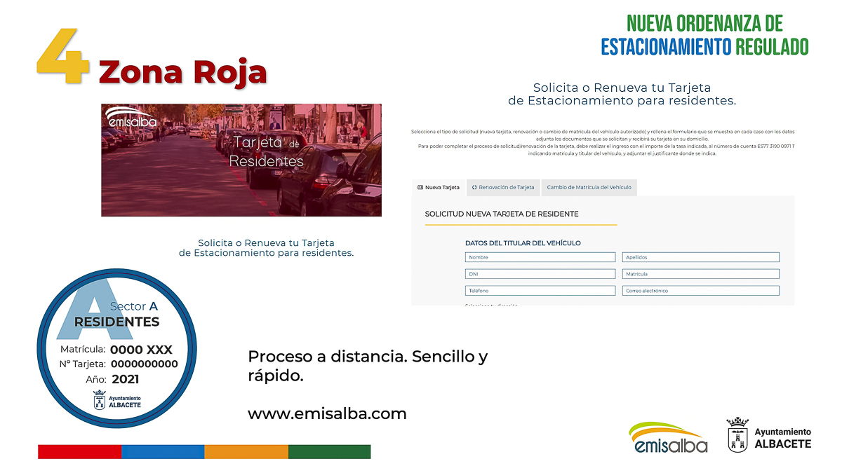 Respecto a la Zona Roja, reservada para los residentes de las diferentes zonas, cuenta con un pago único al año, que permite estacionar de forma ilimitada, dentro del horario de regulación en el sector asignado, renovándose la tarjeta anualmente previo pago de la tasa.