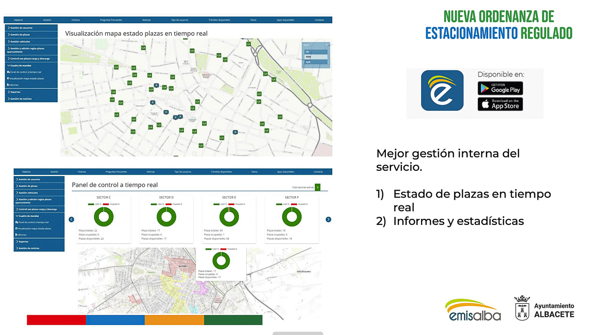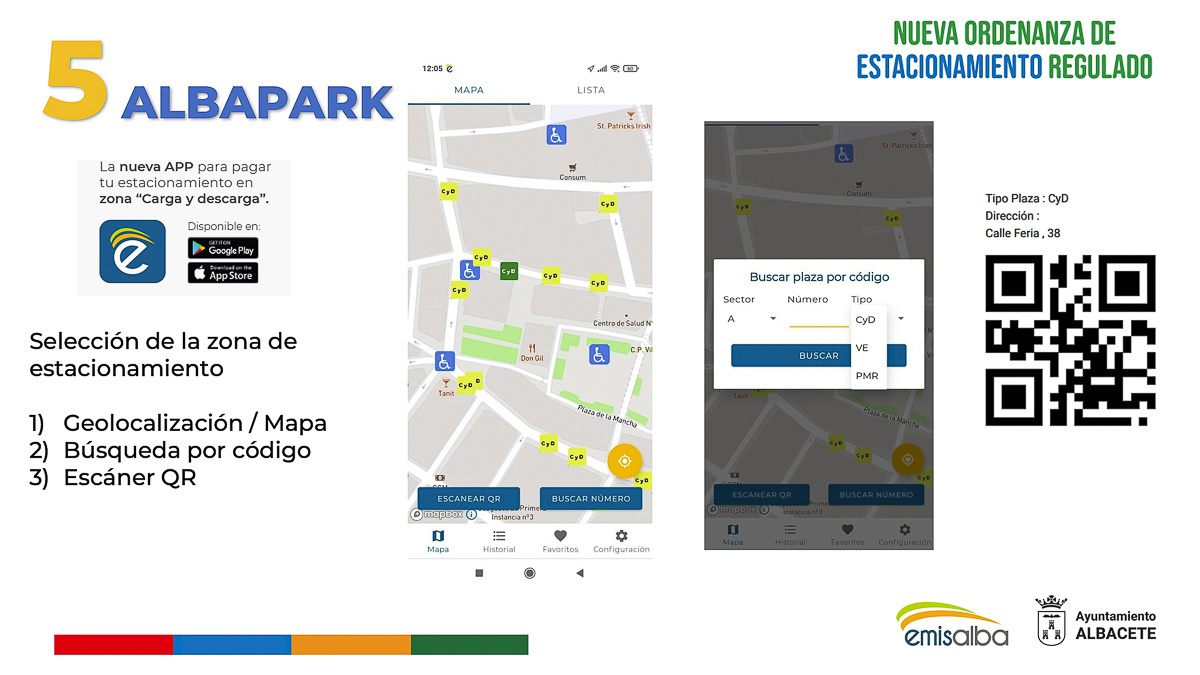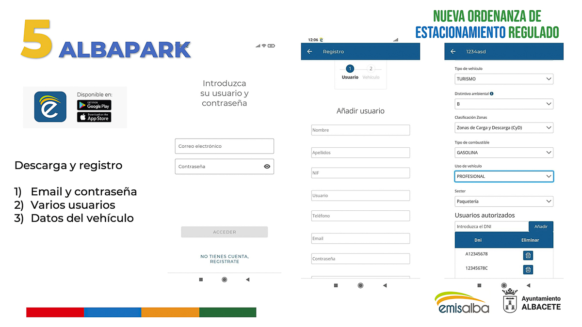 Respecto a Albapark, creada por Emisalba, Espinosa ha indicado que estará disponible tanto en Android como en IOS y será totalmente gratuita, permitiendo a los transportistas y personas con movilidad reducida estacionar en la Zona Naranja. “Esta aplicación es sencilla de utilizar, únicamente habrá que hacer un registro mediante e-mail y contraseña”, ha subrayado el gerente de Emisalba, destacando que el horario genérico de las zonas controladas será de lunes a sábado de 9:00 a 14:00 y tardes de lunes a viernes de 16:30 a 20:00 horas.