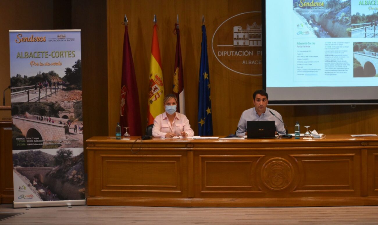 La vicepresidenta de la Diputación de Albacete y responsable de las áreas de Medio Ambiente, Desarrollo Rural y Reto Demográfico, Amparo Torres, ha presentado este miércoles, junto al diputado provincial de Deportes y Juventud, Dani Sancha, la segunda edición de la Ruta de Senderismo que irá de Albacete a Cortes por la Vía Verde de la Sierra de Alcaraz durante los días 23 y 24 de octubre.