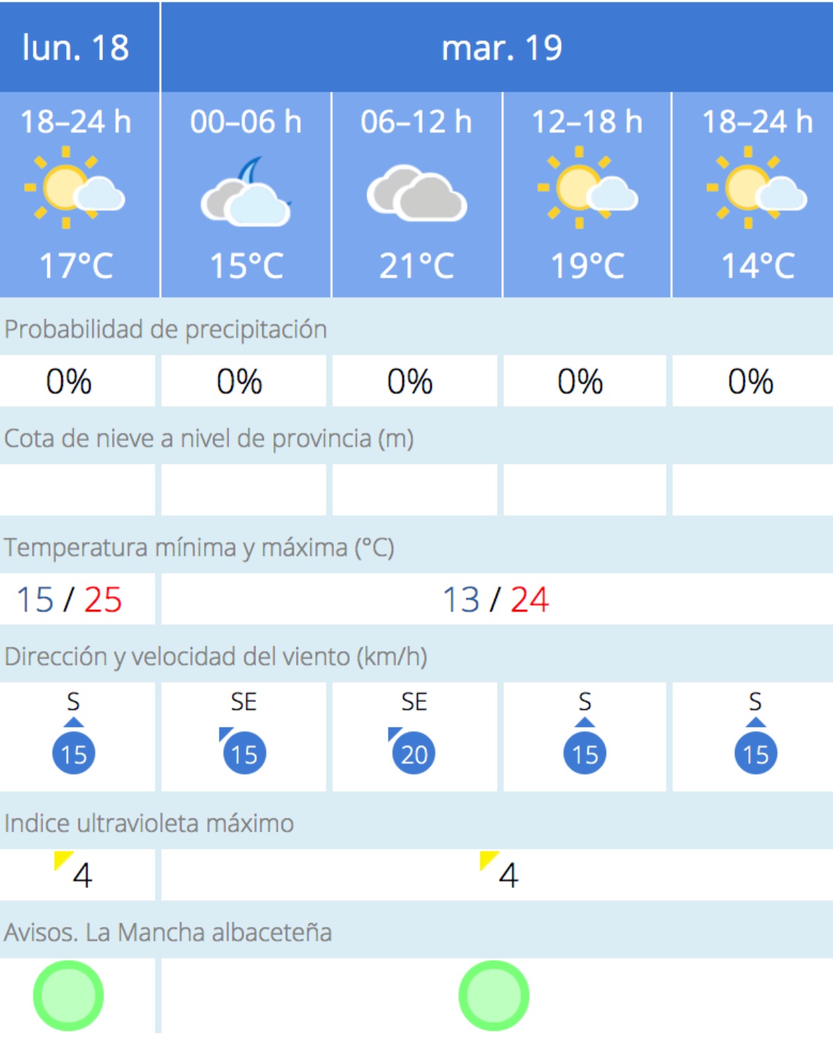 La previsión de la AEMET para Albacete capital es la siguiente: