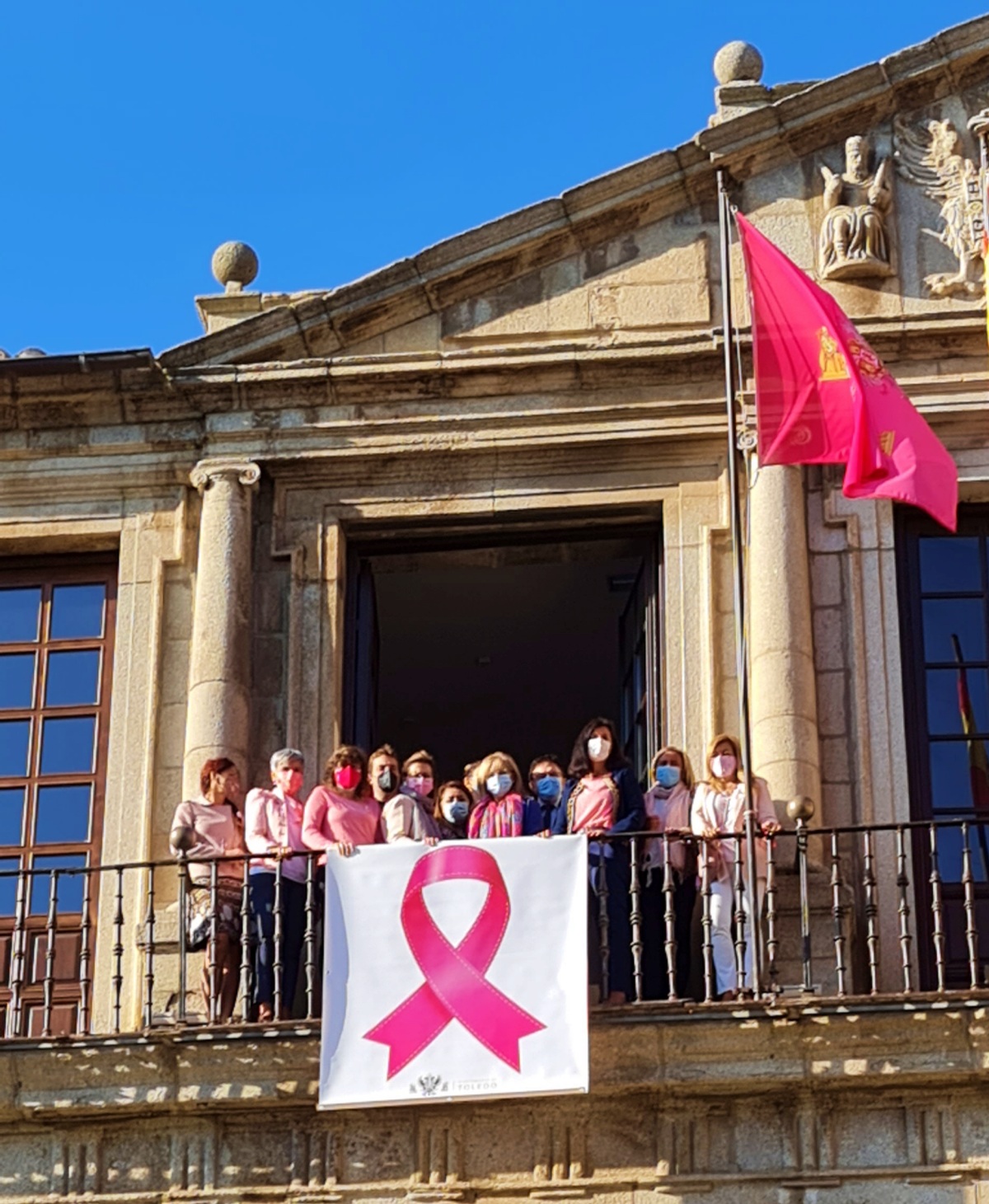 Además, la fachada del Ayuntamiento luce desde hoy el lazo rosa que identifica esta lucha y que ha sido desplegado esta mañana por la edil de Servicios Sociales e Igualdad, Ana Belén Abellán, y la presidenta de la Asociación Española Contra el Cáncer (AECC) en la provincia de Toledo, Lucía Rodríguez, además de otros ediles del Gobierno local y trabajadoras de las Casas Consistoriales.