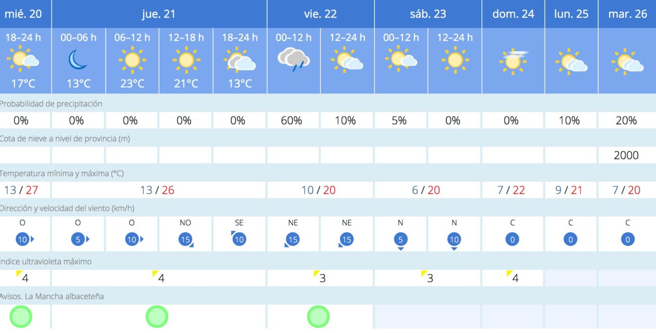 La previsión de la AEMET para Albacete capital es la siguiente: