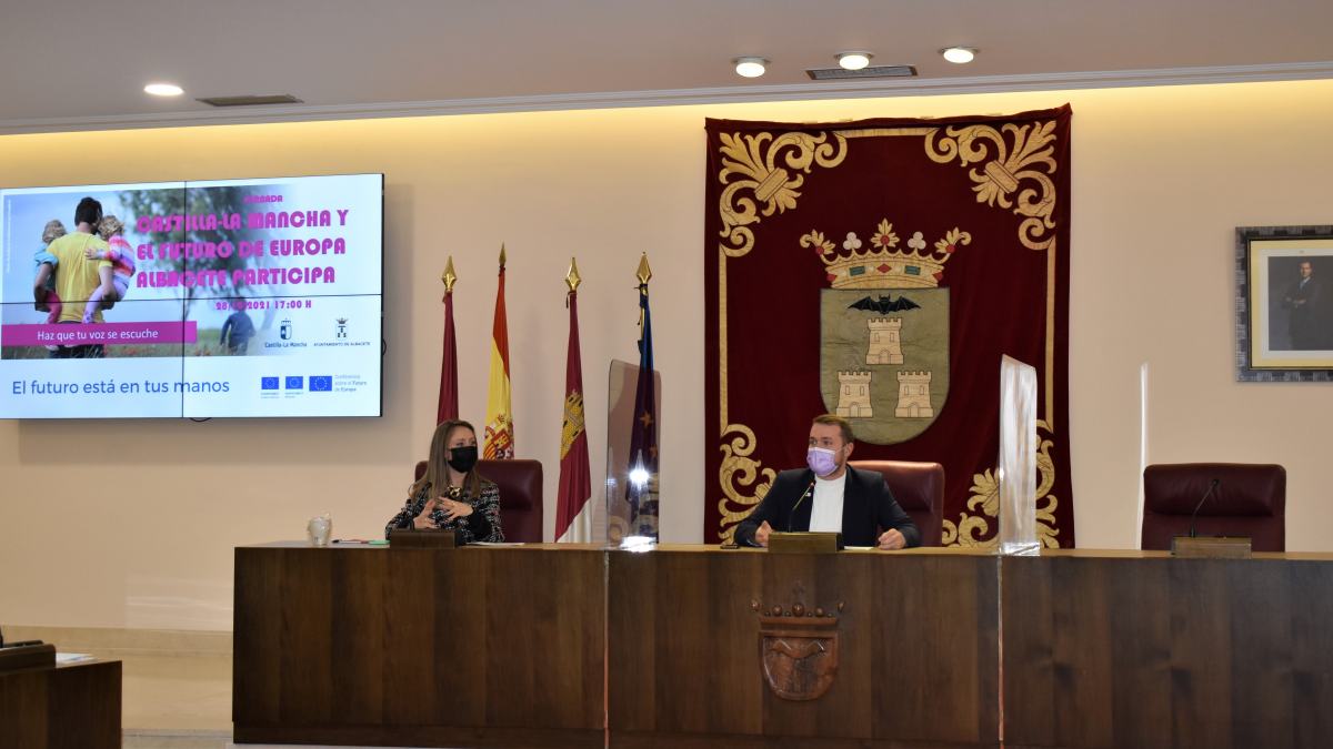 Albacete ha acogido el primer debate de la Conferencia sobre el Futuro de Europa en Castilla-La Mancha, y es que “este es el momento en el que las instituciones europeas están preguntando a la ciudadanía qué pesamos, qué queremos construir para la Europa del futuro y nuestra obligación es responder a esa llamada”, ha indicado el concejal de Participación, Manuel Martínez, al inicio de este debate que se ha desarrollado en el Salón de Plenos del Consistorio y del que también ha formado parte la edil de Asuntos Europeos, Laura Avellaneda.