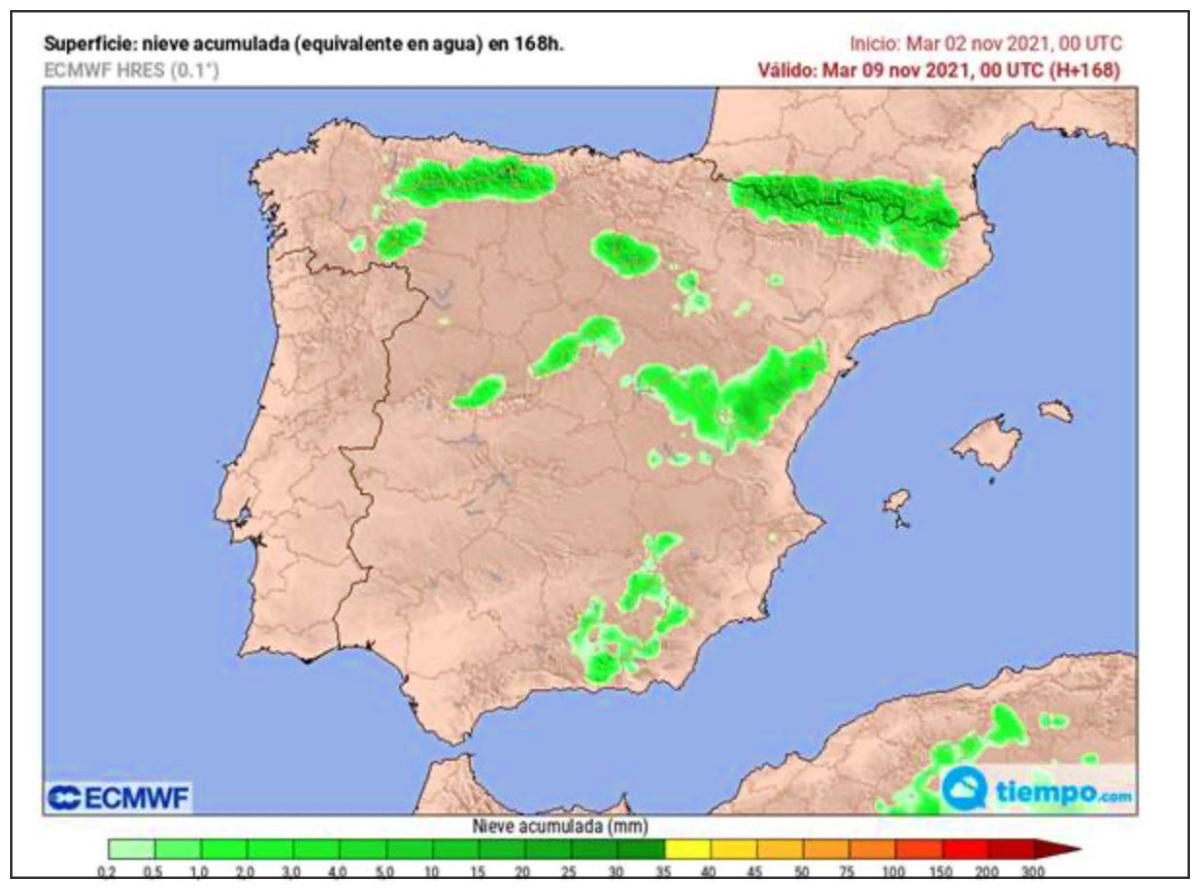 La incertidumbre sobre la posición final e intensidad de la dana y baja superficie aún no permite especificar en qué puntos se producirán las precipitaciones, su intensidad y acumulados, según los modelos respectivos del ECMWF. Las precipitaciones abundantes están garantizadas en el tercio norte.