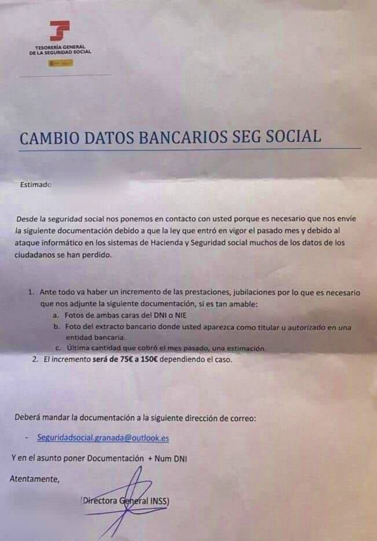 LA ESTAFA COMIENZA TRAS RECIBIR UNA CARTA, SUPUESTAMENTE, DE LA SEGURIDAD SOCIAL