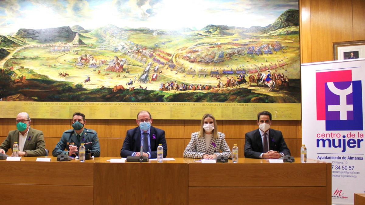 El acto, que se ha celebrado en el Salón de Plenos del Ayuntamiento, han intervenido el alcalde de Almansa, Javier Sánchez Roselló, la concejala de Igualdad, Marta Rico, el director gerente del Hospital y Centro de Salud, Antonio Sánchez, el capitán de la Guardia Civil, Emilio Lozano, y el decano del Colegio de Profesionales de la Abogacía de Albacete, Albino Escribano.