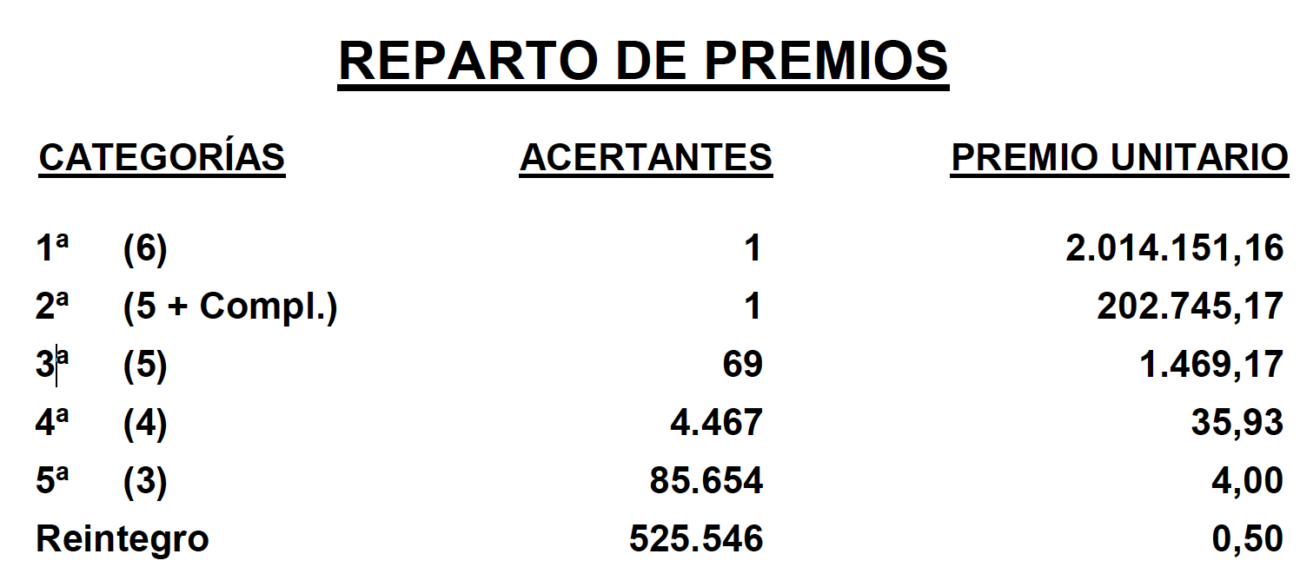 PREMIO DE MÁS DE 2 MILLONES DE EUROS