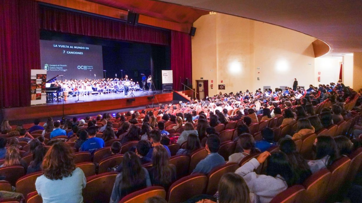 En el día de hoy, se ha celebrado la culminación de la segunda fase de este proyecto, con un concierto denominado ‘UBUNTU: La vuelta al mundo en siete canciones’, que ha tenido lugar en el Teatro ‘Emilio Gavira’ de Alcázar de San Juan. En él, unos 20 docentes de 17 colegios de nuestra comunidad autónoma, junto con su alumnado, unos 600 niños y niñas en total, han participado en un gran coro que ha ofrecido canciones de distintas partes del mundo, así como alguna canción del propio musical.