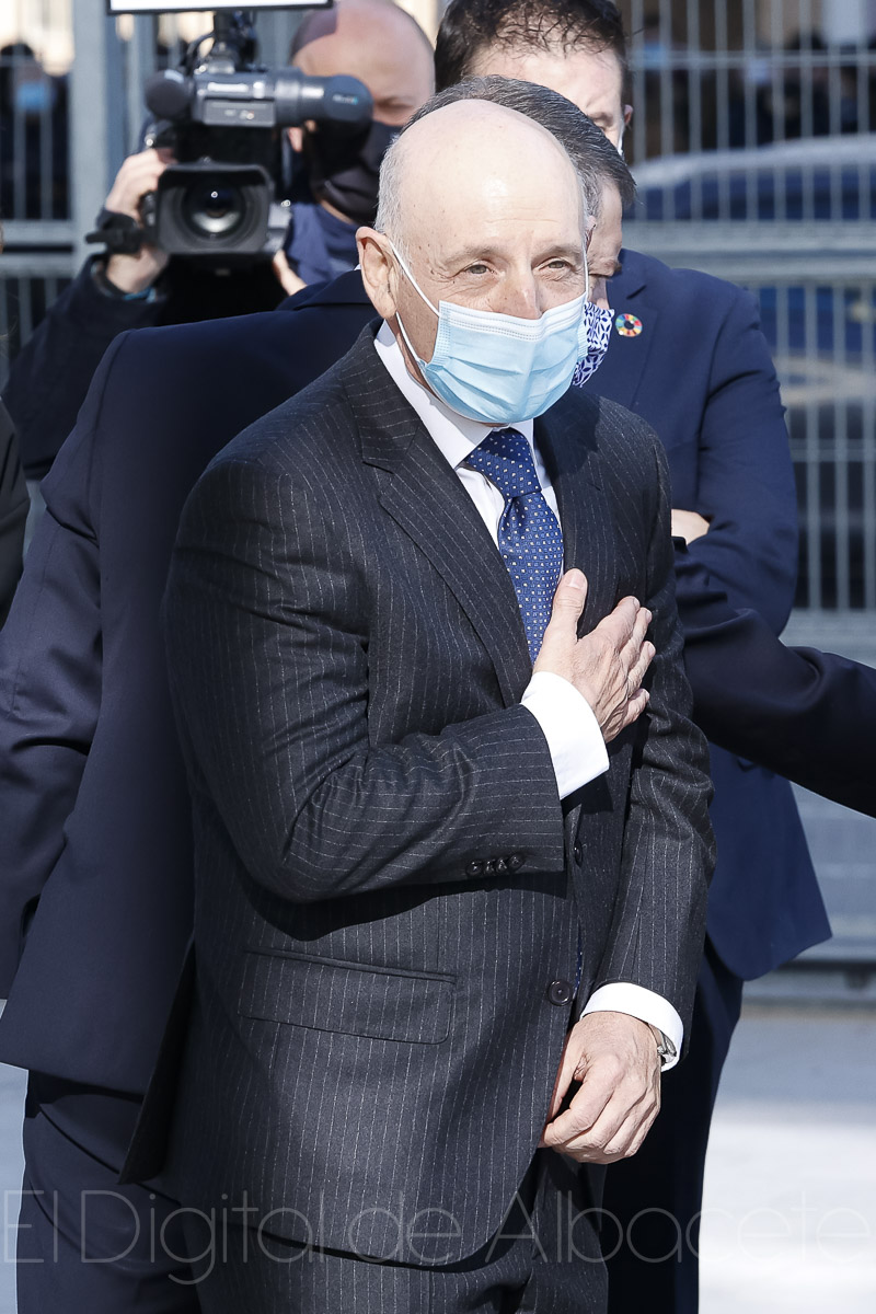 Además, han acompañado al Rey en su visita a Albacete, presidente de la Junta de Comunidades de Castilla-La Mancha, Emiliano García-Page; la ministra de Justicia, Pilar Llop; la fiscal general del Estado, Dolores Delgado; y el presidente del Tribunal Superior de Justicia de Castilla-La Mancha, Vicente Rouco, entre otras autoridades.