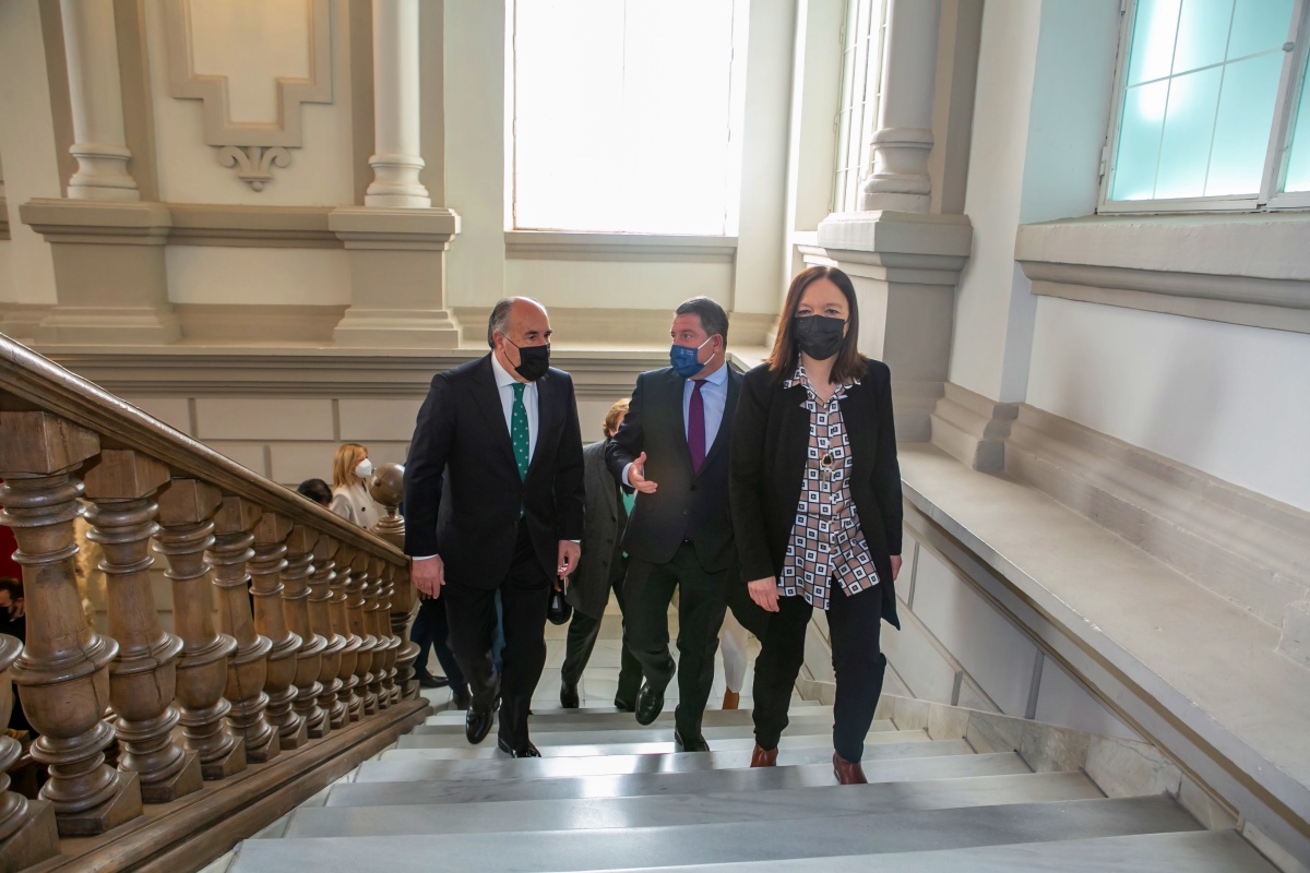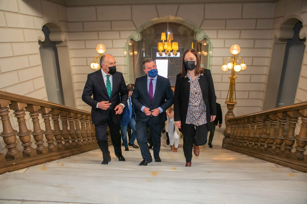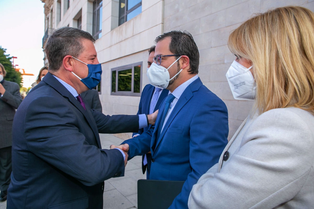 Además del presidente de Castilla-La Mancha, han comparecido ante los medios de comunicación la alcaldesa de Alcázar de San Juan, Rosa Melchor, y el alcalde Algeciras, José Ignacio Landaluce.