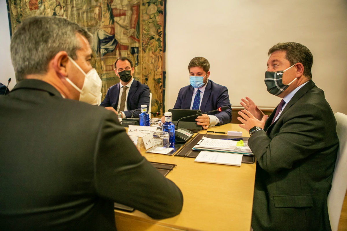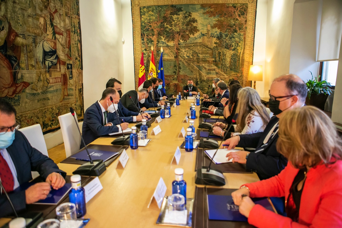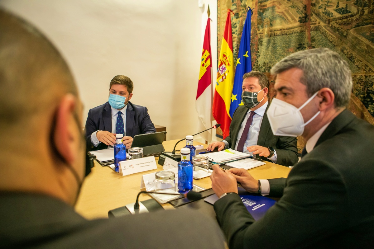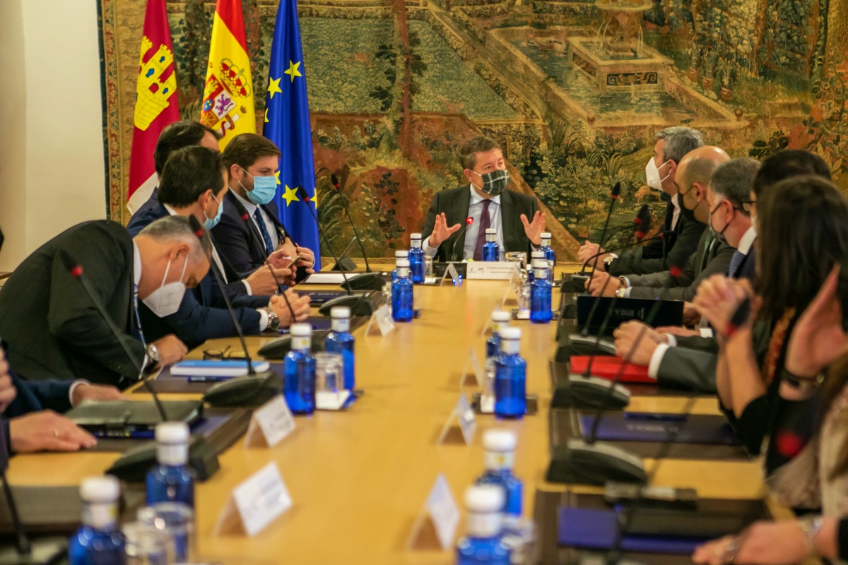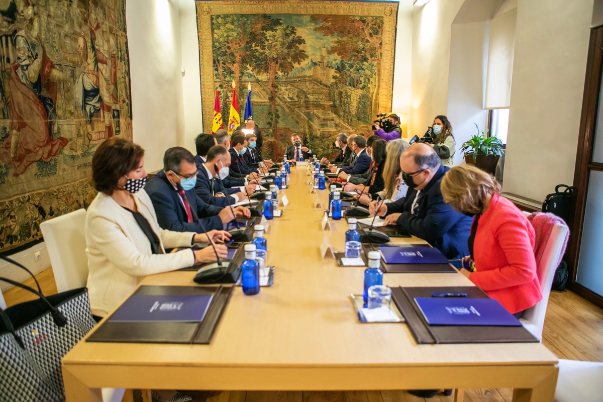 El jefe del Ejecutivo regional, Emiliano García-Page, se ha reunido con representantes de las entidades bancarias con presencia en Castilla-La Mancha para conocer la hoja de ruta de éstas en torno a la movilización de sus activos inmobiliarios para cooperar en materia de ocupación ilegal de viviendas.