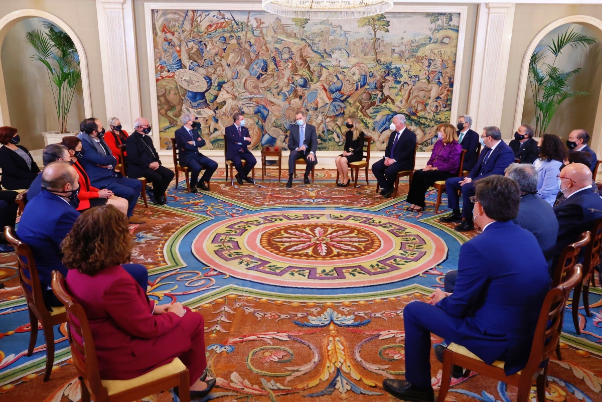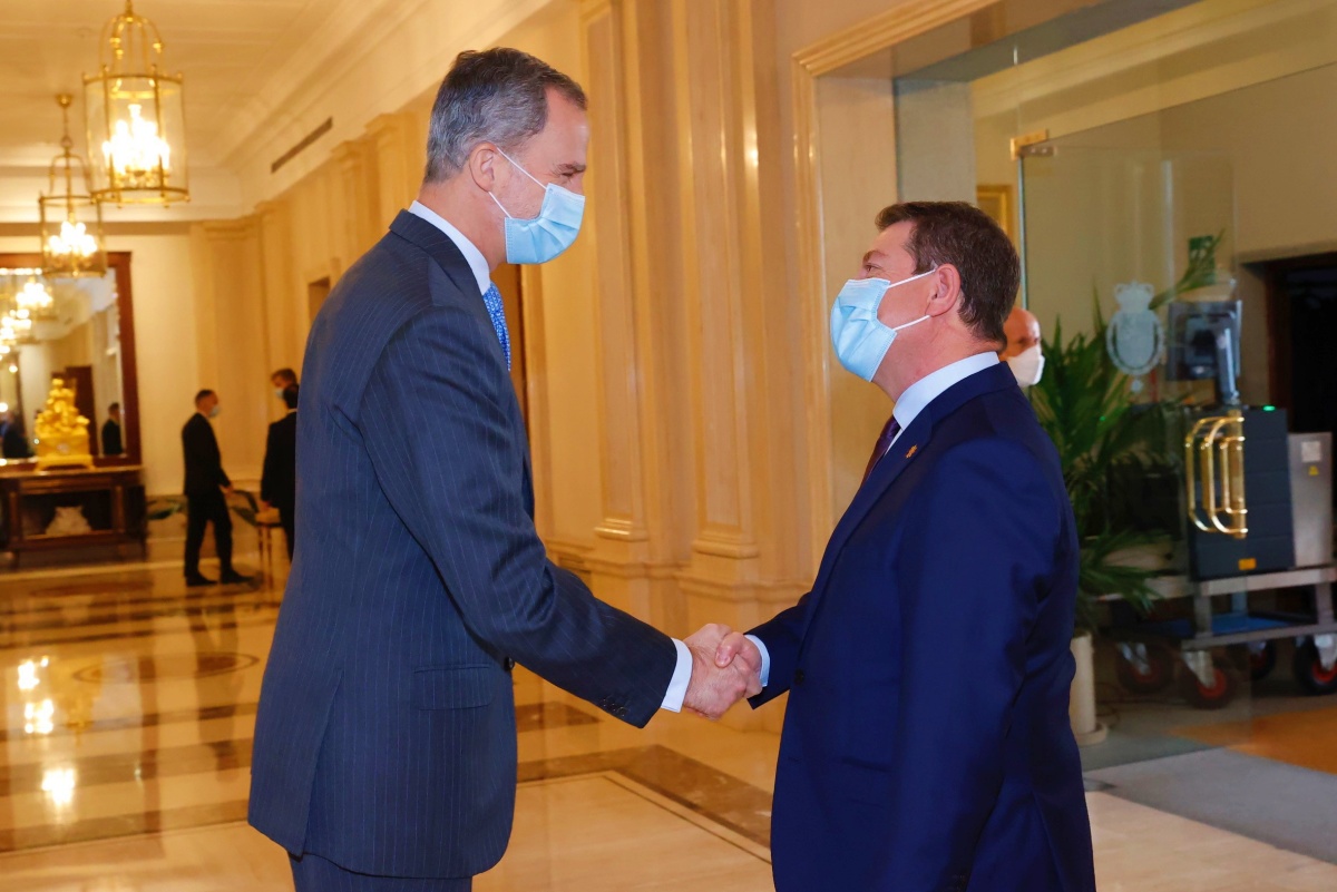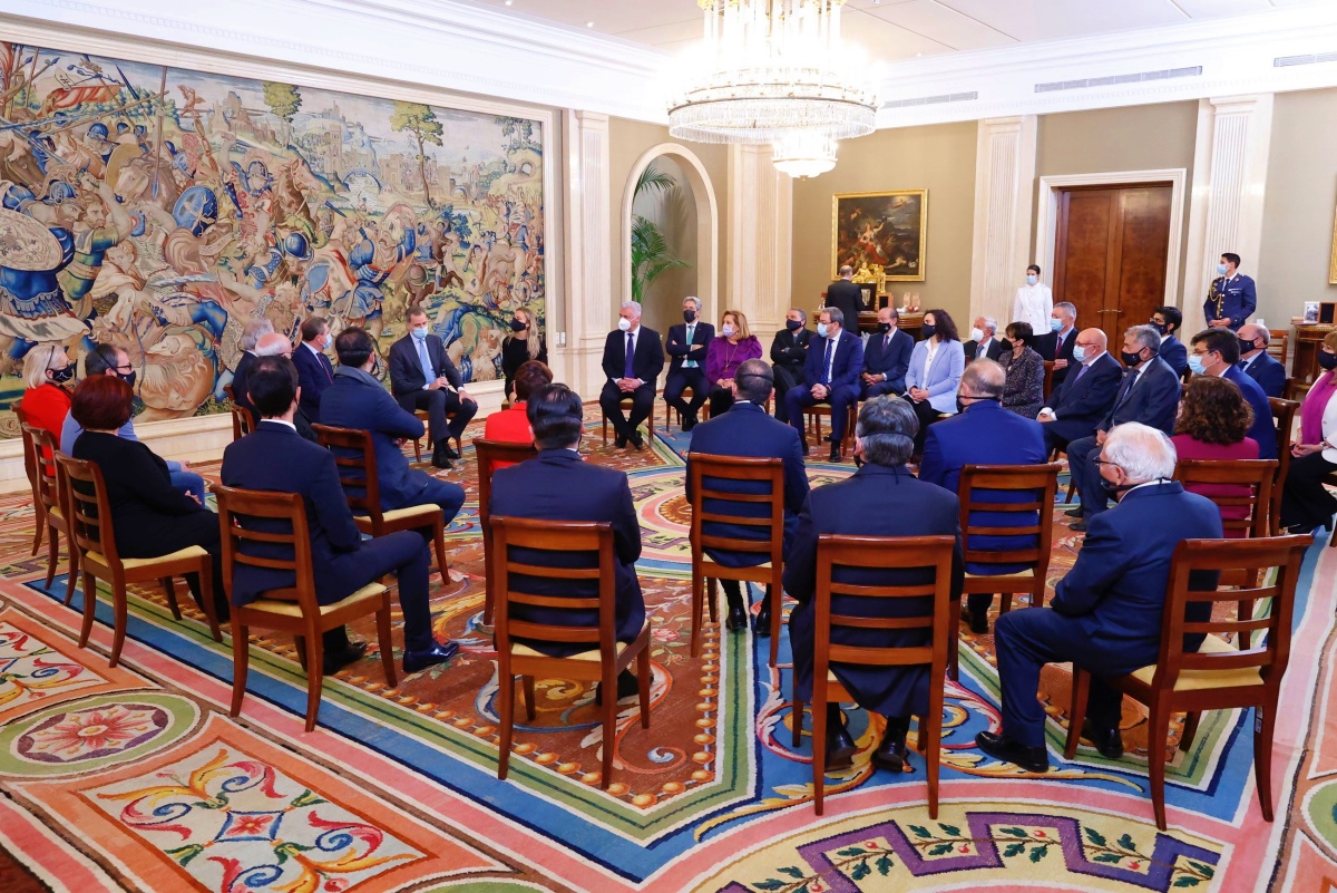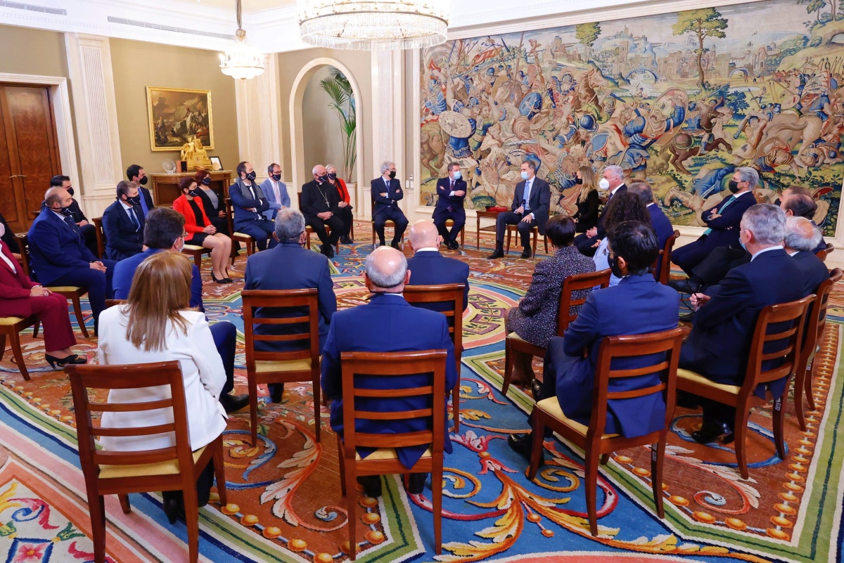 Su Majestad el Rey, Felipe VI, ha recibido en audiencia a los miembros de la Asamblea del Grupo de Ciudades Patrimonio de la Humanidad de España, para presentar a los nuevos miembros que conforman la Asamblea, máximo órgano de gobierno de la asociación, tras la constitución de las nuevas corporaciones municipales.