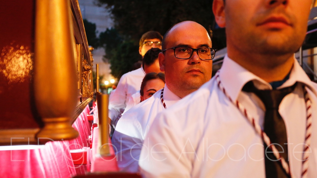 Tanto el paso del Santísimo Cristo de la Coronación de Espinas como el de la Sagrada Lanzada son portados a hombros por entre 14 y 16 costaleros. En concreto cabe destacar que los varales se encuentran dispuestos a los laterales del trono, en lugar de estar dispuestos delante y detrás como ocurre en la mayoría de las imágenes que procesionan en la Semana Santa de Albacete.