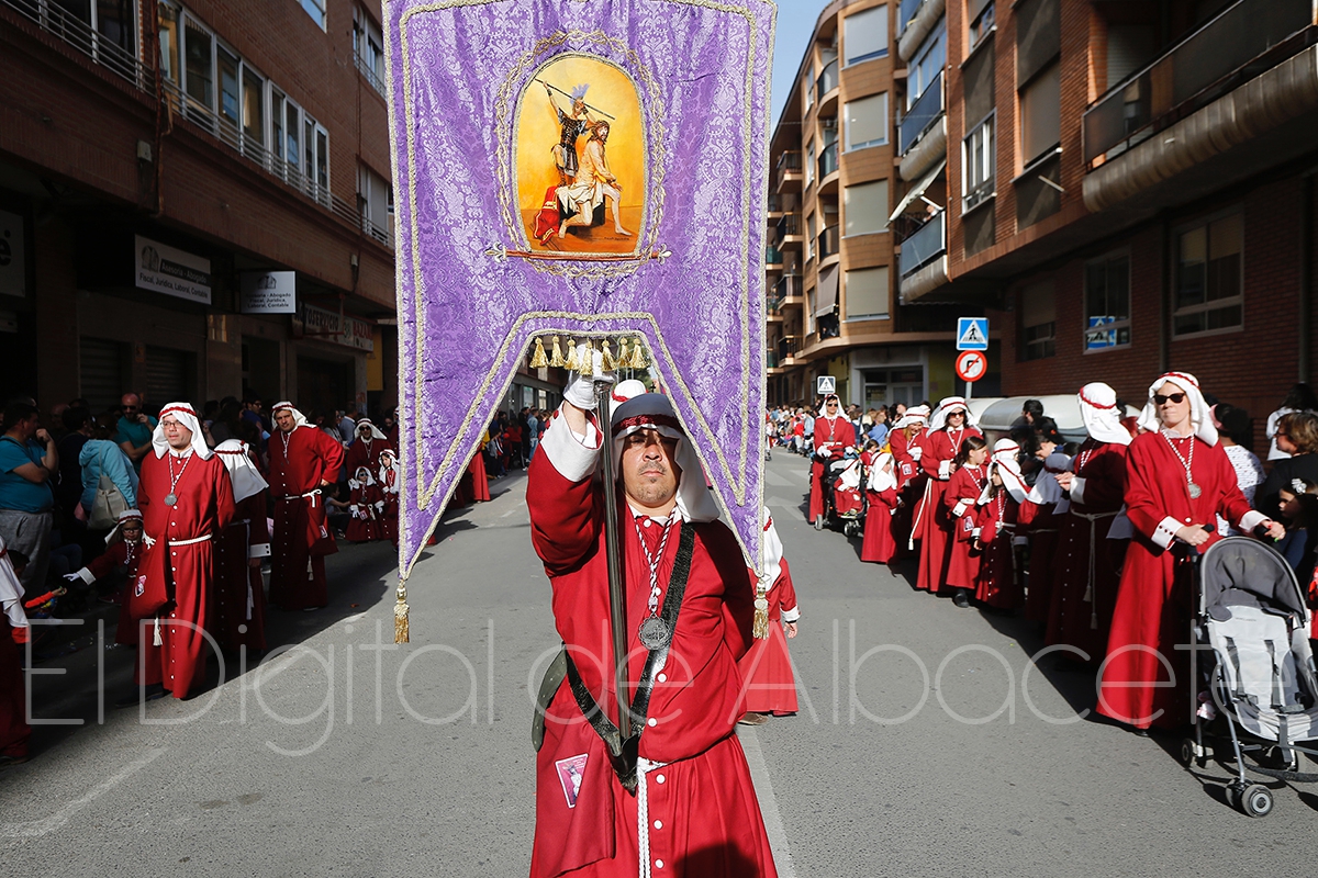 Tanto el paso del Santísimo Cristo de la Coronación de Espinas como el de la Sagrada Lanzada son portados a hombros por entre 14 y 16 costaleros. En concreto cabe destacar que los varales se encuentran dispuestos a los laterales del trono, en lugar de estar dispuestos delante y detrás como ocurre en la mayoría de las imágenes que procesionan en la Semana Santa de Albacete.