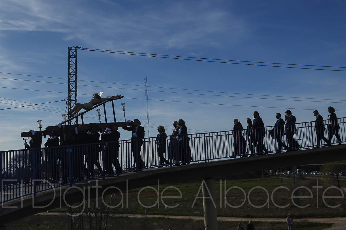 Una de las estampas más características de esta procesión ha sido el momento en el que la talla del Cristo de las Misericordias cruzaba por encima de los coches que circulaban por la autovía a través de las pasarelas habilitadas. En concreto, el itinerario que ha seguido esta procesión en Albacete ha sido: Capilla del Cementerio Municipal, Pasarelas del Cementerio (autovía y tren), Letur, Palencia, Toledo, Valladolid, Ferrocarril, Parque del Ferrocarril, Federico García Lorca, Carmen Ibáñez, José Isbert, Zurbarán hasta la Parroquia de El Buen Pastor.