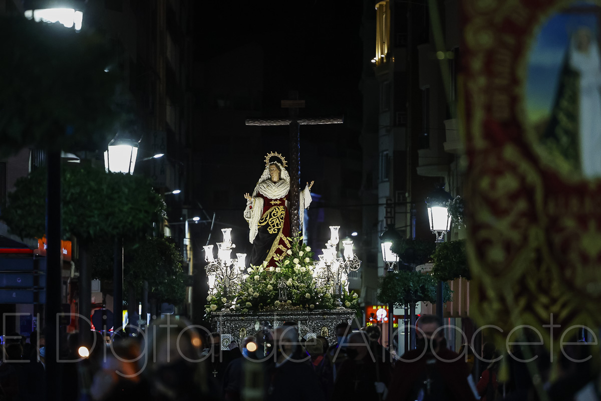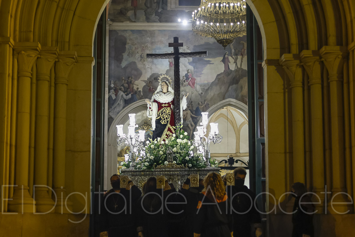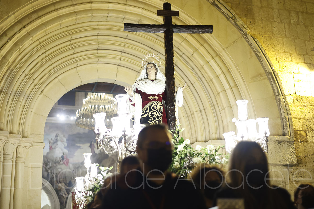 La segunda procesión en salir a las calles de Albacete ha sido el Via Matris protagonizado por la imagen de Nuestra Señora de la Amargura. Minutos después de las nueve de la noche la recién restaurada imagen salía de la Catedral de Albacete para recorrer junto a cofrades y fieles la Plaza Virgen de Los Llanos, Bajada de San Juan, Martínez Villena, Rosario, Plaza de la Constitución, Cura, San Julián, Martínez Villena, Bajada de San Juan y regresar a la Catedral.