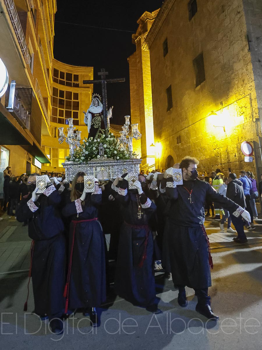 Albacete ha vivido un intenso Viernes de Dolores y las cofradías han vuelto a salir a la calle para engrandecer nuestra Semana Santa, declarada de Interés Turístico Nacional, después de dos años sin hacerlo a causa de la situación sanitaria provocada por la pandemia de COVID-19.