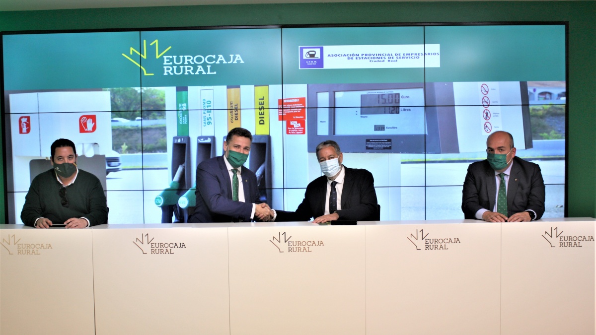 Este convenio ha sido firmado por el director general de Eurocaja Rural, Víctor Manuel Martín López, y el presidente de la Asociación Provincial de Empresarios de Estaciones de Servicio de Ciudad Real, Francisco Molina Mena, acompañados por el director de la División de Negocio de Eurocaja Rural, Enrique Muñoz Sánchez, y el vocal de la Asociación Provincial de Empresarios de Estaciones de Servicio de Ciudad Real, Francisco Javier Molina González.
