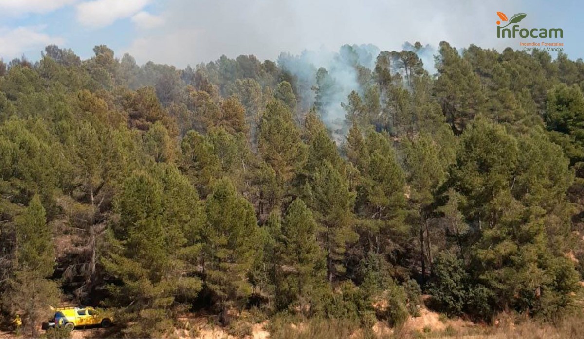 Un dispositivo integrado por dos medios terrestres y uno aéreo, con un total de diez personas, está trabajando en las labores de extinción de un incendio forestal que se ha declarado este sábado en La Pesquera, en la comarca de la Manchuela de Cuenca.