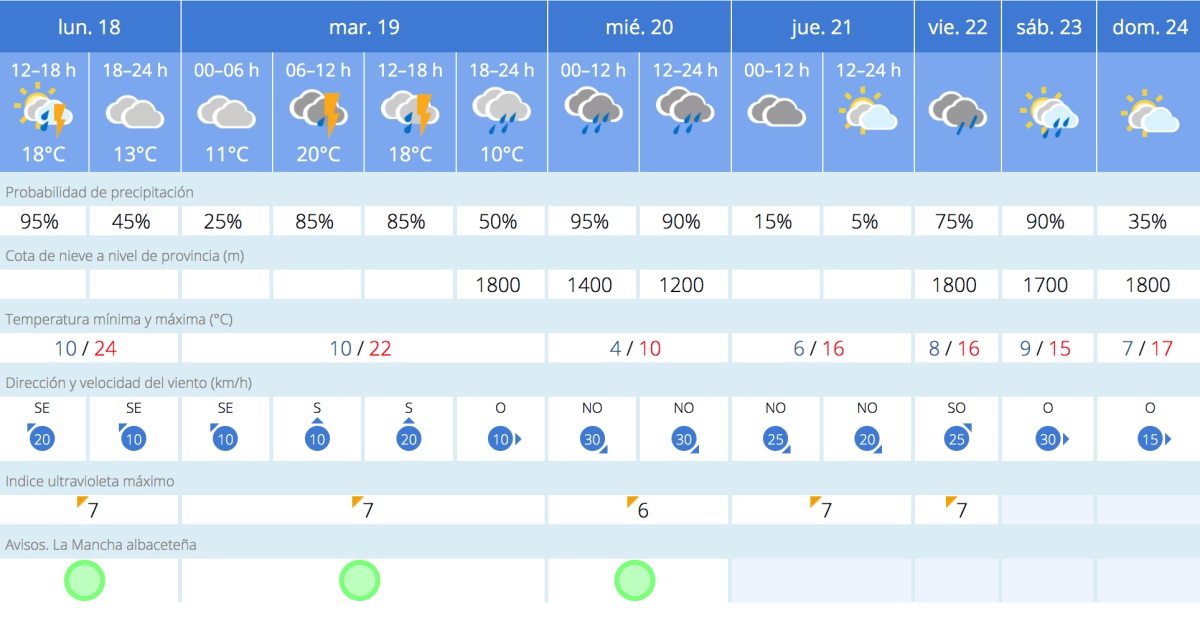 La previsión de la AEMET para Albacete capital es la siguiente: