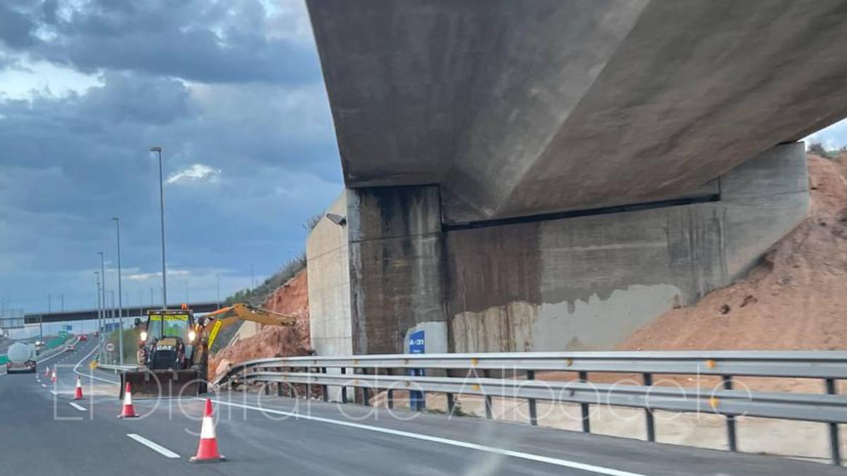 El desprendimiento de un muro obliga a cortar varios carriles de la A-30 y la A-31 a su paso por Albacete