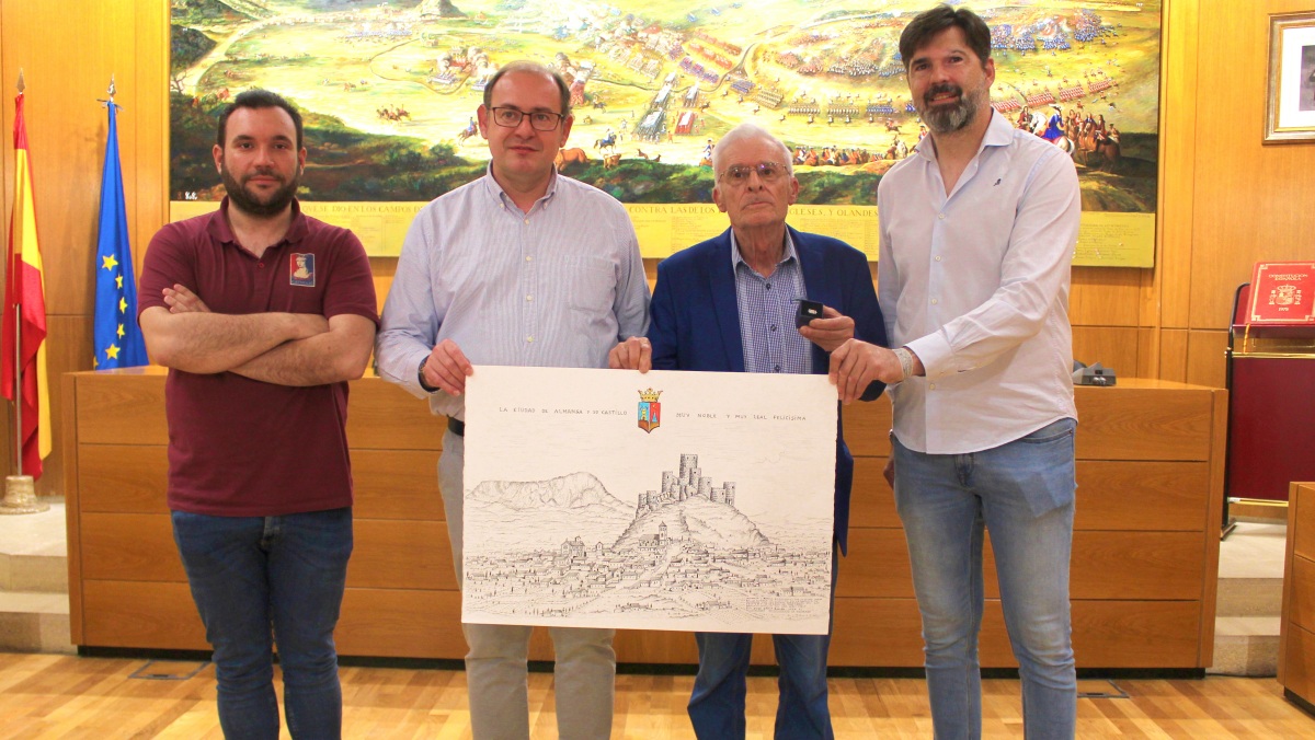 En agradecimiento por la exposición, el afamado pintor ha donado al Ayuntamiento de Almansa un grabado a plumilla de elaboración propia, copia del original de 1.680 en el que aparece la villa de Almansa en aquella época. El alcalde de Almansa le ha entregado un pin de plata de la ciudad y un libro sobre nuestra historia como agradecimiento a la donación.