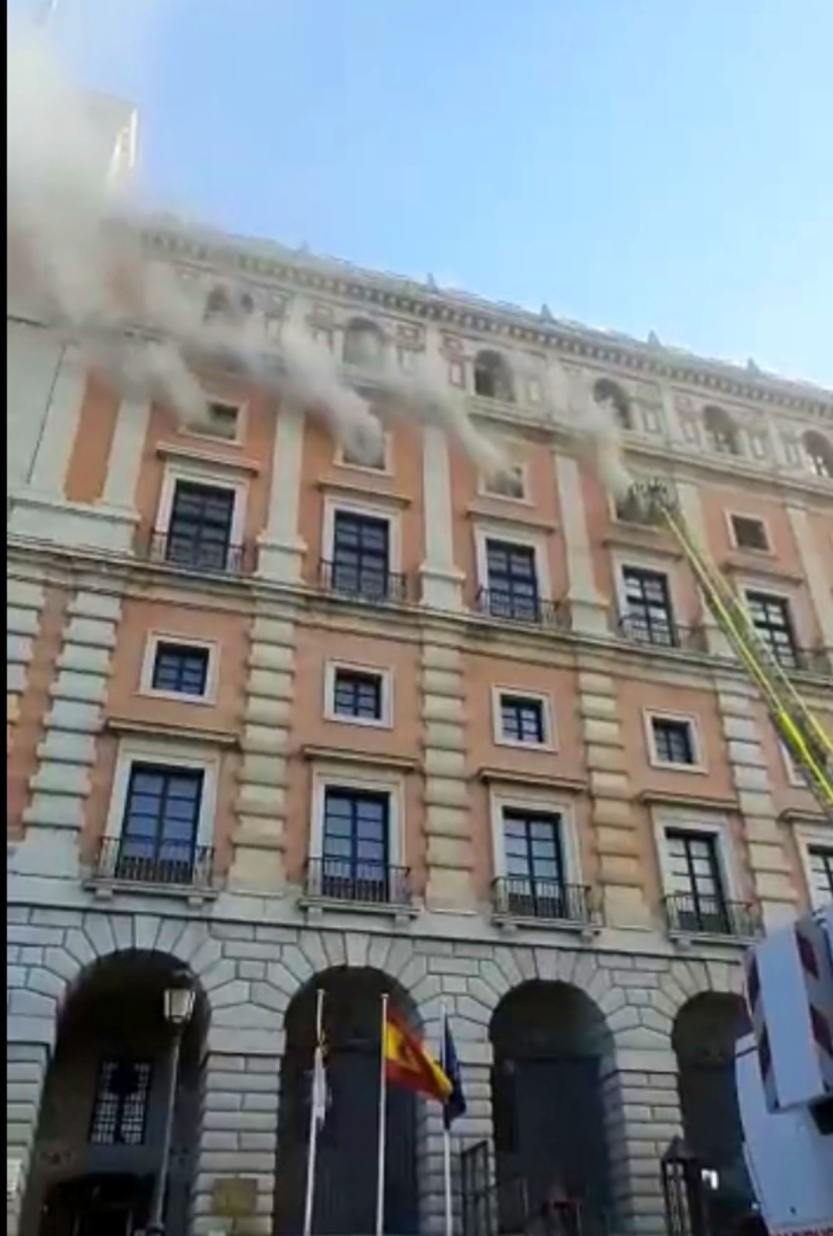 Este lunes se ha declarado un incendio en el Alcázar de Toledo y hasta el lugar de los hechos se desplazaron para luchar contra las llamas 8 camiones de bomberos y sus efectivos, así como Policía Nacional, Policía Local y una UVI en preventivo.