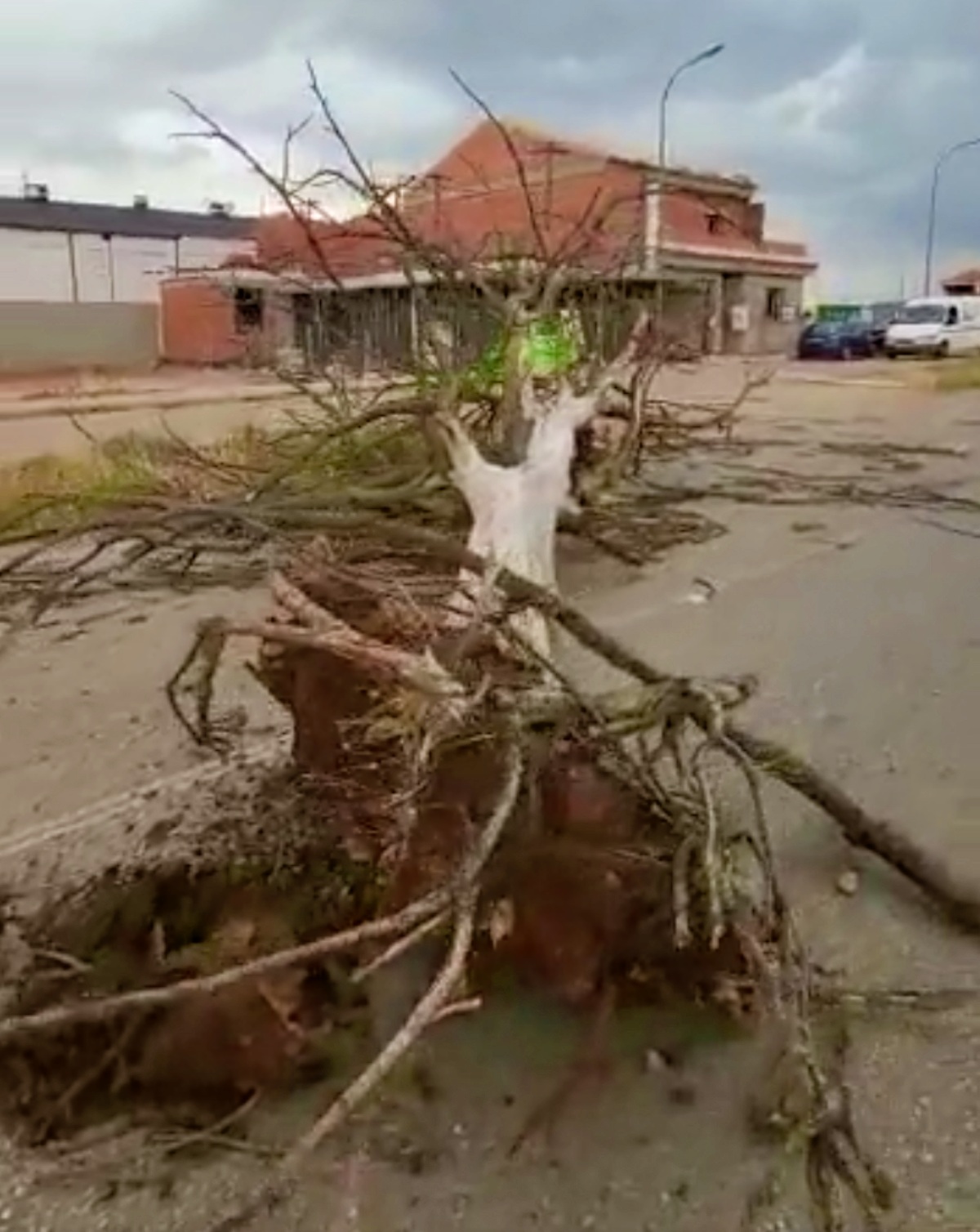 Eran en torno a las 17.00 horas y un conductor circulaba con su coche por una de las vías de las afueras de Motilla del Palancar, cuando de repente rachas de viento de hasta 107 km/h comenzaron a soplar y arrancaron de cuajo un árbol de grandes dimensiones, que cayó sobre el techo del vehículo y que por fortuna, y a tenor de los daños causados en el coche, no causó daños personales de gravedad por pura casualidad.