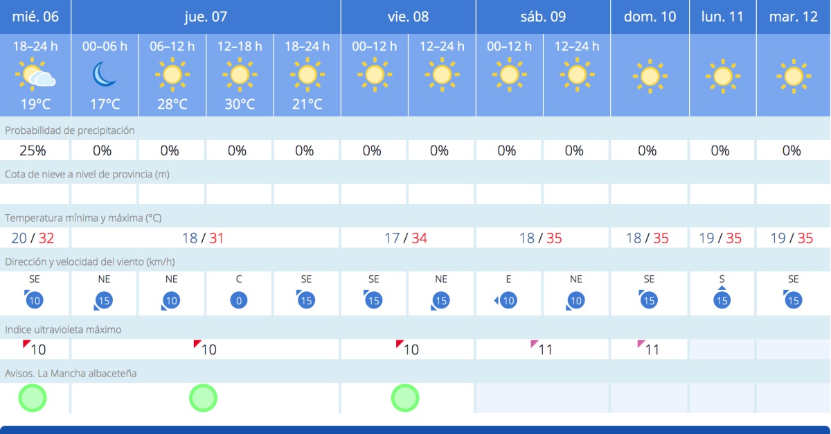 Albacete y su provincia no serán ajenas al fuerte calor y el sol caerá con justicia tanto en la capital como en todo el territorio provincial.