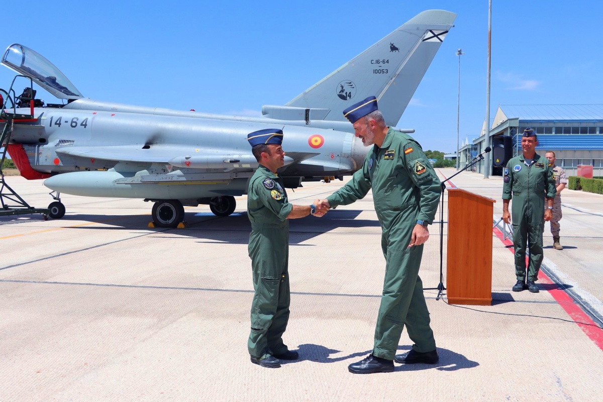 Ocho pilotos del Ala 14, de la Base Aérea de Albacete, han recibido de manos del jefe de crecimiento del área de combate de Airbus, Marco Grumbrecht, los primeros parches acreditativos, de diseño exclusivo, de las 1.000 horas de vuelo en Eurofighter de la unidad.