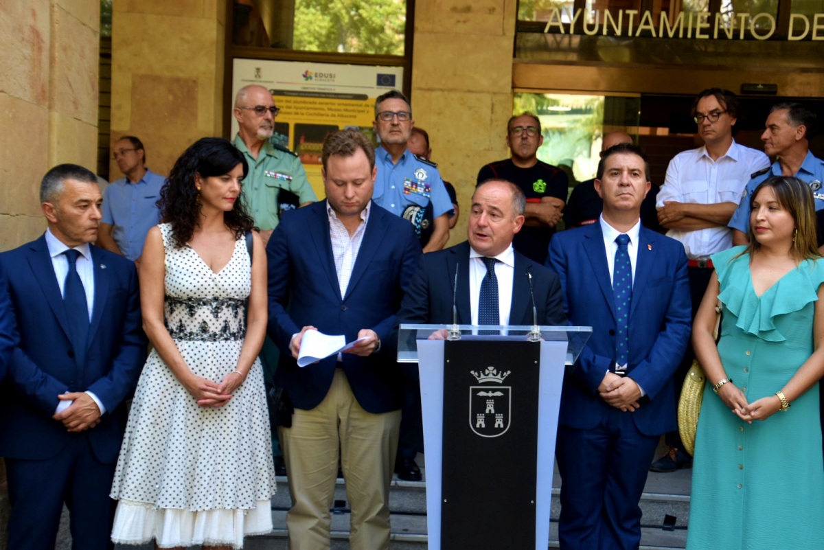 Acompañado por los vicepresidentes Fran Valera y Amparo Torres por parte del equipo de gobierno, y también junto a representantes tanto de otras formaciones de la Corporación Provincial como del resto de administraciones (de la local a la nacional, pasando por la regional), Cabañero ha participado en los cinco minutos de silencio que se han guardado a las puertas del Ayuntamiento de Albacete, arropados por los ciudadanos y ciudadanas que han deseado sumarse. Un gesto con el que, una vez más y de forma contundentes, ha mostrado su solidaridad con todas las víctimas y su repulsa unánime ante cualquier clase de acto terrorista.