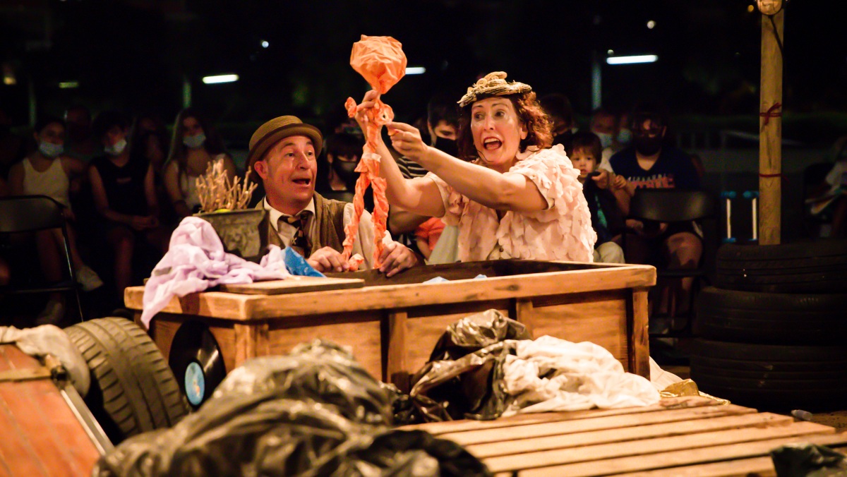 Dos clowns, tirados entre basuras, nos demostraran cómo muchas de las cosas que acaban en la papelera o en los contenedores, podrían tener otras vidas. El abuso de los plásticos, que daña nuestros mares y masas oceánicas y un singular viaje por un vertedero, son algunas de las escenas que podrá presenciar el público que, en este espectáculo, se convierte en espectador y protagonista a la vez.